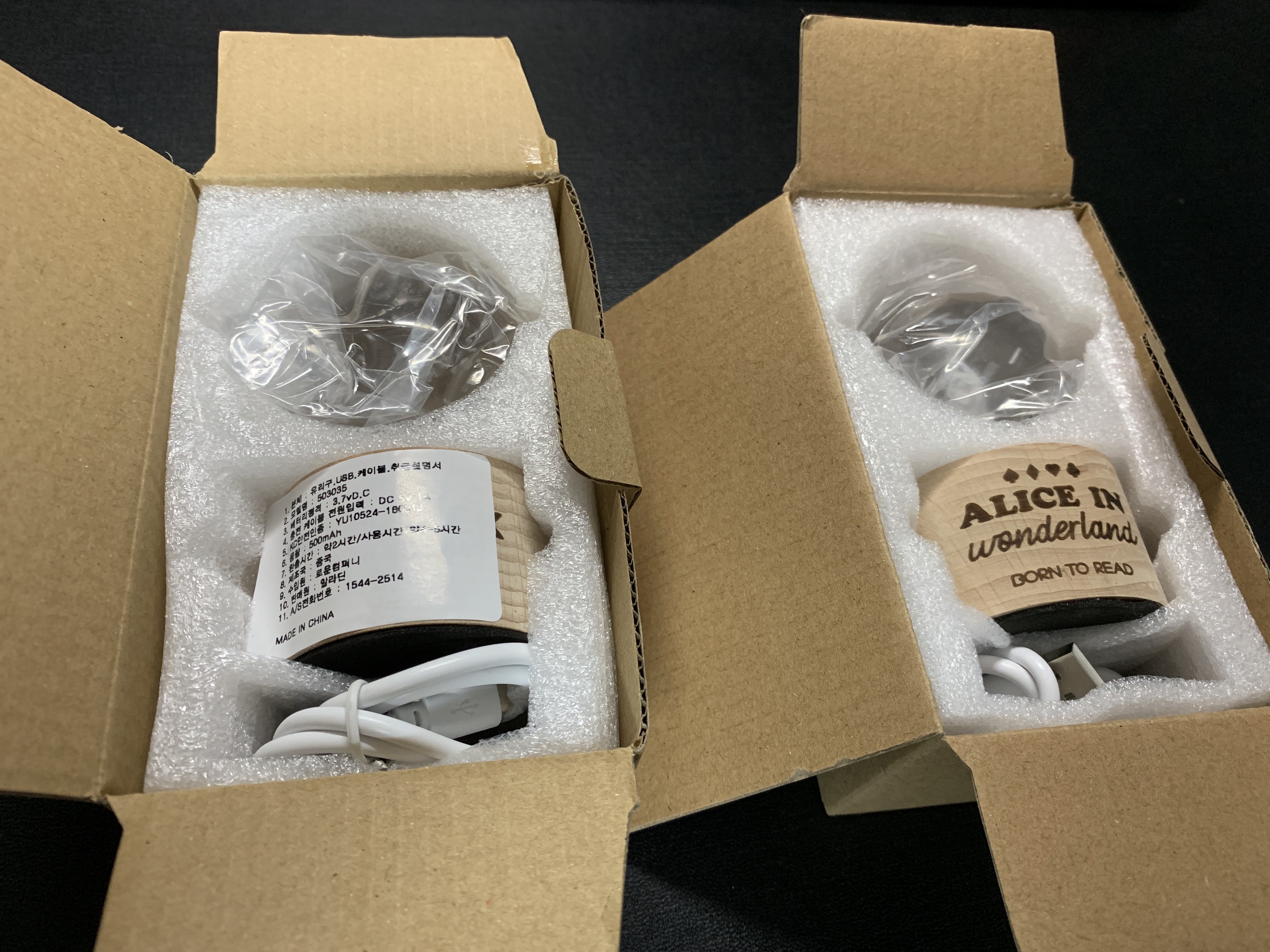 굿즈 사고 책 받아본 분들은 아시겠지만... 알라딘 굿즈는 참 이뻐요. 그런데 실용성은? ㅎㅎ 거의 대부분 실용적이라고 보긴 어렵습니다. 이번 구슬 램프 또한 다르지 않아요. 정말 예쁜데요. 훔. 훔. 훔. 그다지 실용적이진 않습니다. 완충 시 약 8시간 정도 사용이 가능하다고 합니다. 고속 충전기로 충전하지 말라고 쓰여있더군요.