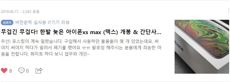 | 무겁긴 무겁다! 한발 늦은 아이폰xs max (맥스) 개봉 & 간단사용기(리뷰/후기) (0) | 2019.06.17 |