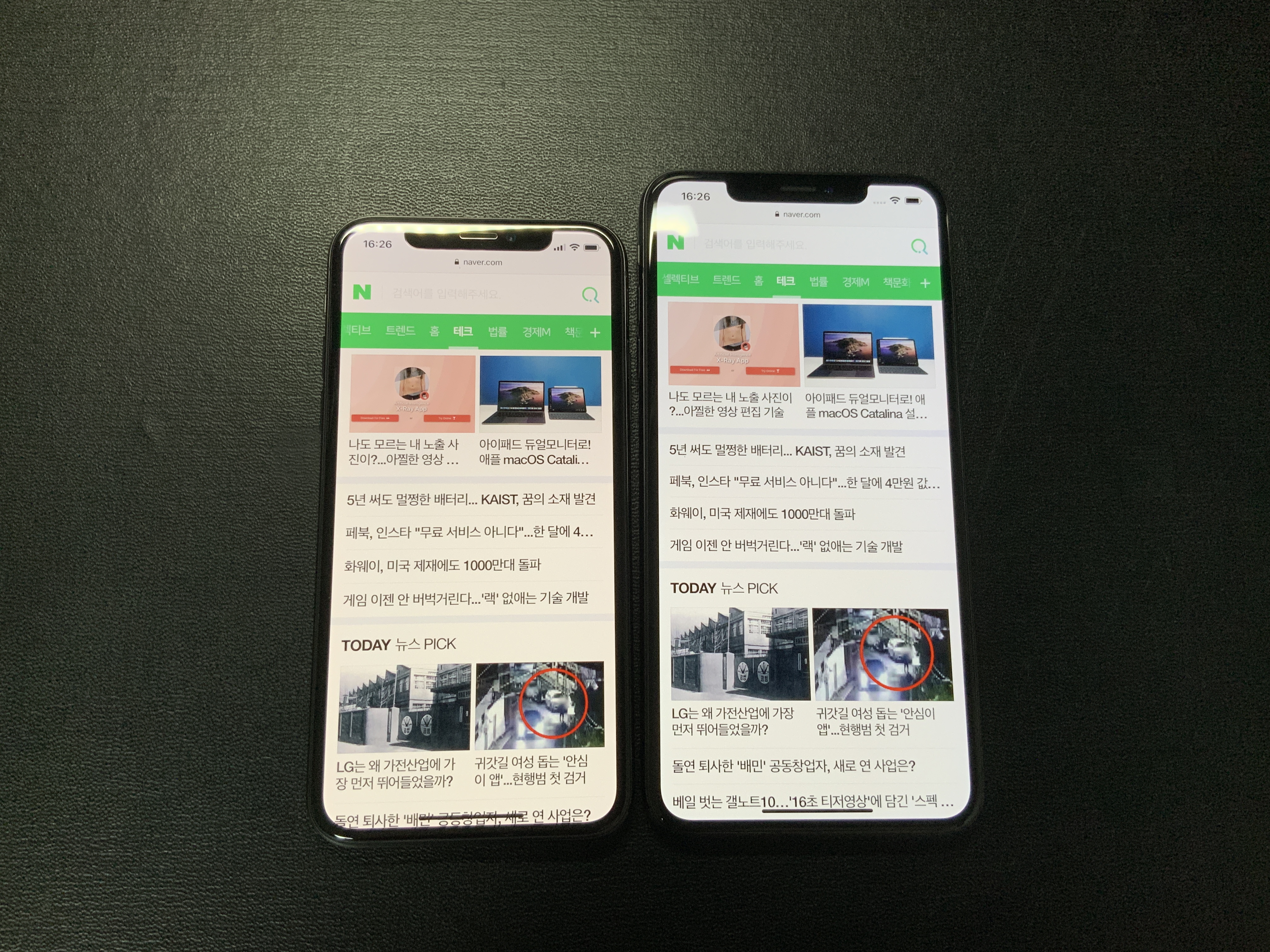 반면 웹툰이나 만화를 볼 때는 그 차이가 매우 큽니다. 일종의 이미지 형태이기 때문에 화면 안에 들어오는 양은 동일합니다. 그러다 보니 화면크기 차이가 미치는 영향이 아주 크죠. 최근에 나오는 웹툰 등은 활자 크기 조정을 해서 아주 큰 영향을 주지는 않습니다만, 예전 웹툰은 활자 크기가 작거든요. 그리고 만화책의 경우에는 xs로는 읽기 힘든 수준으로 바뀌어버립니다... 이게 사실 아이폰xs max로 바꾼 결정적인 이유였기 때문에... 그로 인한 아쉬움은 퍽퍽해도 삼킬 수밖에 없네요.ㅠㅠ