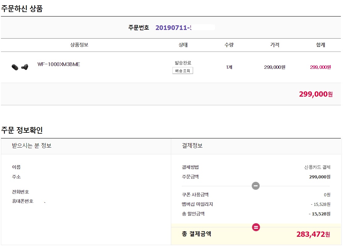 시기가 시기인 만큼 소니코리아는 7월 11일 예정되어 있던 신제품 발표 행사를 전격 취소했습니다. 그리고 11일 오전, 루머와 달리 하루 일찍 소니온라인스토어와 오픈마켓 그리고 여러 오프라인 매장 등을 통해 조용히 국내 판매를 시작합니다. 미리 구입을 결정했었던 저는 올라오자마자 바로 결제를 했습니다. 결제 후 한 시간 정도 지나고 바로 발송 처리를 합니다. 생각보다 빠르게 진행시키더군요. 12일 아침 정상적으로 수령을 했습니다.