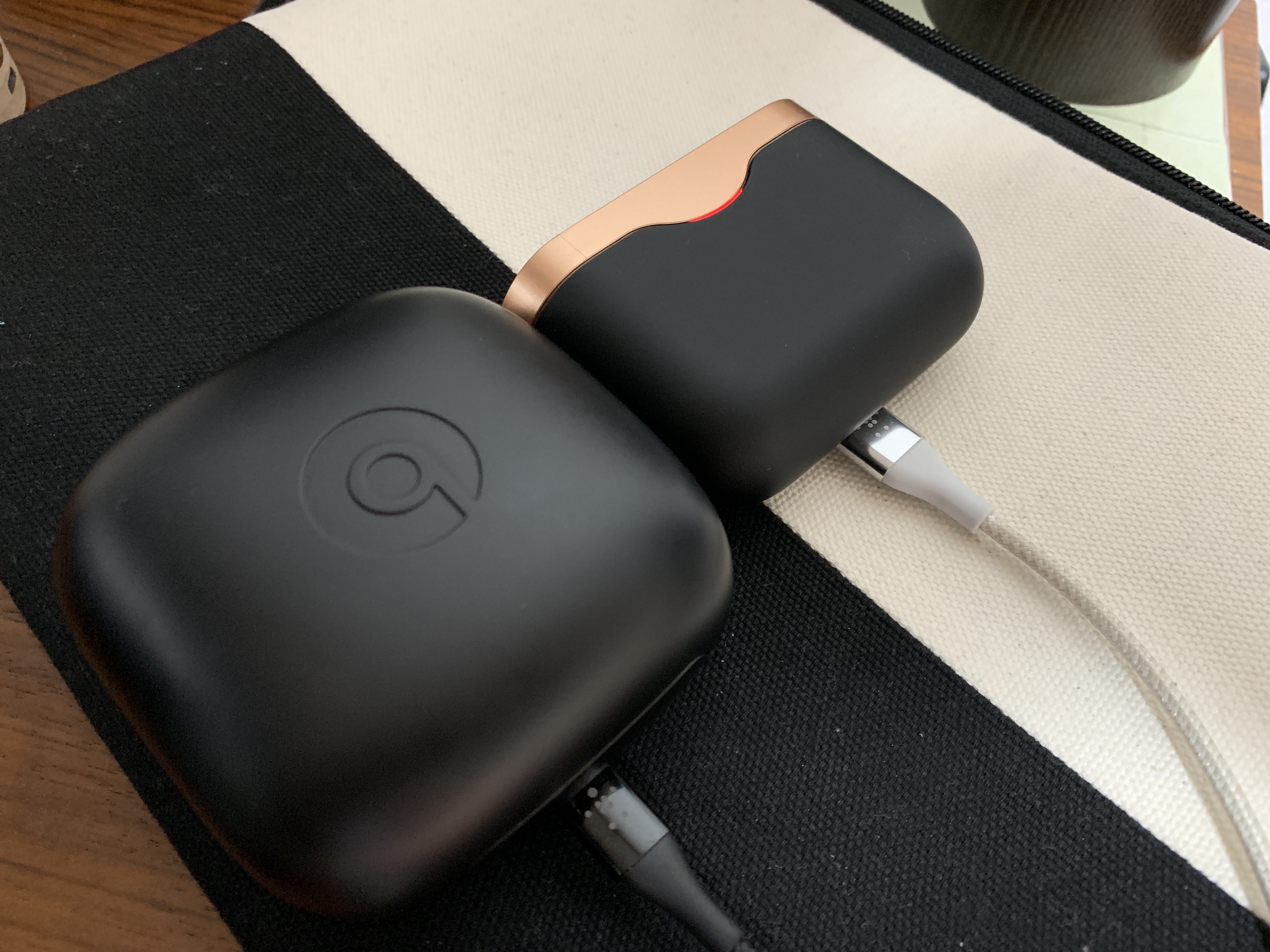 케이스의 경우, 솔직히 작을 줄 알았습니다. 그런데! 정말 커요. 예상 밖이었어요. 파워비츠 프로 케이스와 전체 크기는 체감상 비슷합니다. 물론 두께나 무게 등은 비교적 작습니다. 그래서 실제 주머니에 넣고 다니는 게 파워비츠 프로 케이스만큼 부담스럽지는 않은데요. 하지만... 여름에 바지에 넣고 다니기는 부담스러운 수준인 건 마찬가지네요ㅠㅠ 파워비츠 프로 때문에 개인적으로 굉장히 많이 아쉬운 부분 중 하나입니다.