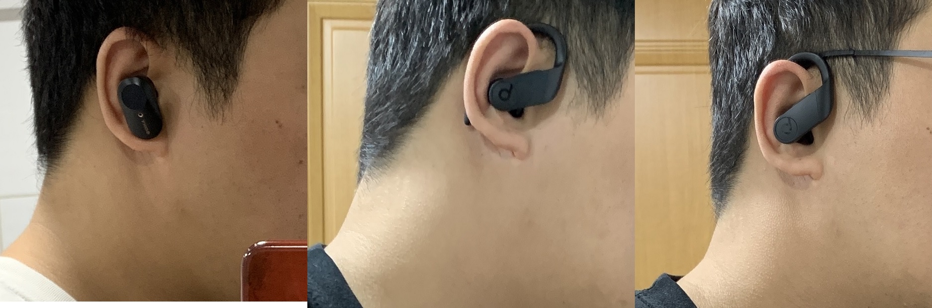 제가 WF-SP900을 고려하다 포기한 결정적인 이유가 착용했을 때 모습 사진들 때문이었거든요. 그게 좀 뭐랄까요 통화용 블루투스 이어폰 보는 것 같았습니다. 그런데 이번 m3 실물로 착용을 해보니 의외로 나쁘지 않았어요. 행거형보다는 훨씬 자연스럽고 보기 좋았습니다.