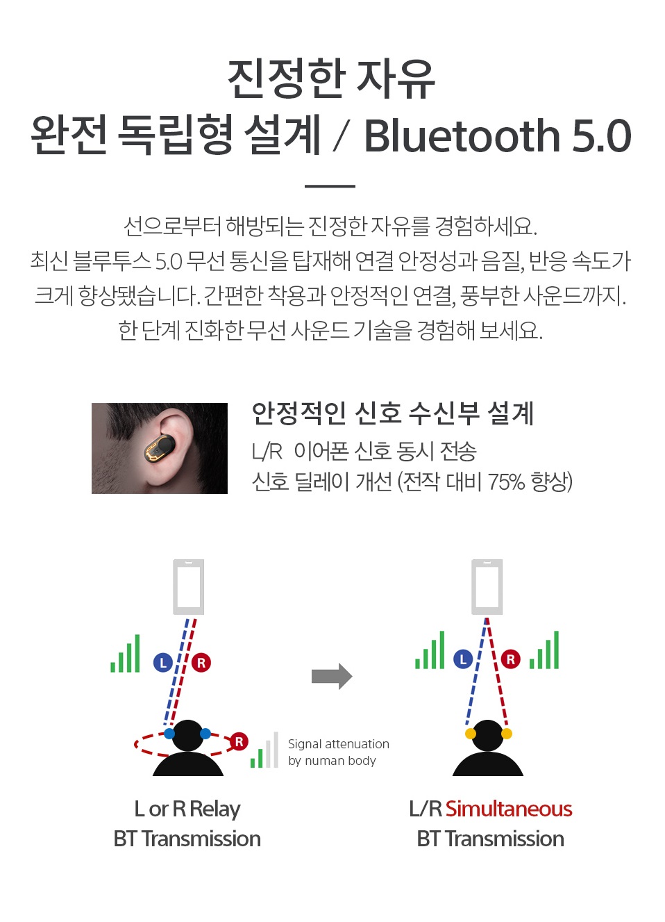 이번 m3는 이런 부분에서 상당히 많은 개선이 되었습니다. 블루투스 5.0을 채택했으며, 좌우 이어폰 모두가 동시에 신호를 받기 때문에 전작 대비 75% 딜레이가 개선되었다고 합니다. 저 역시 실제 사용하면서 끊김을 경험하지 못했고, 영상 시청할 때 딜레이가 전혀 없었습니다.