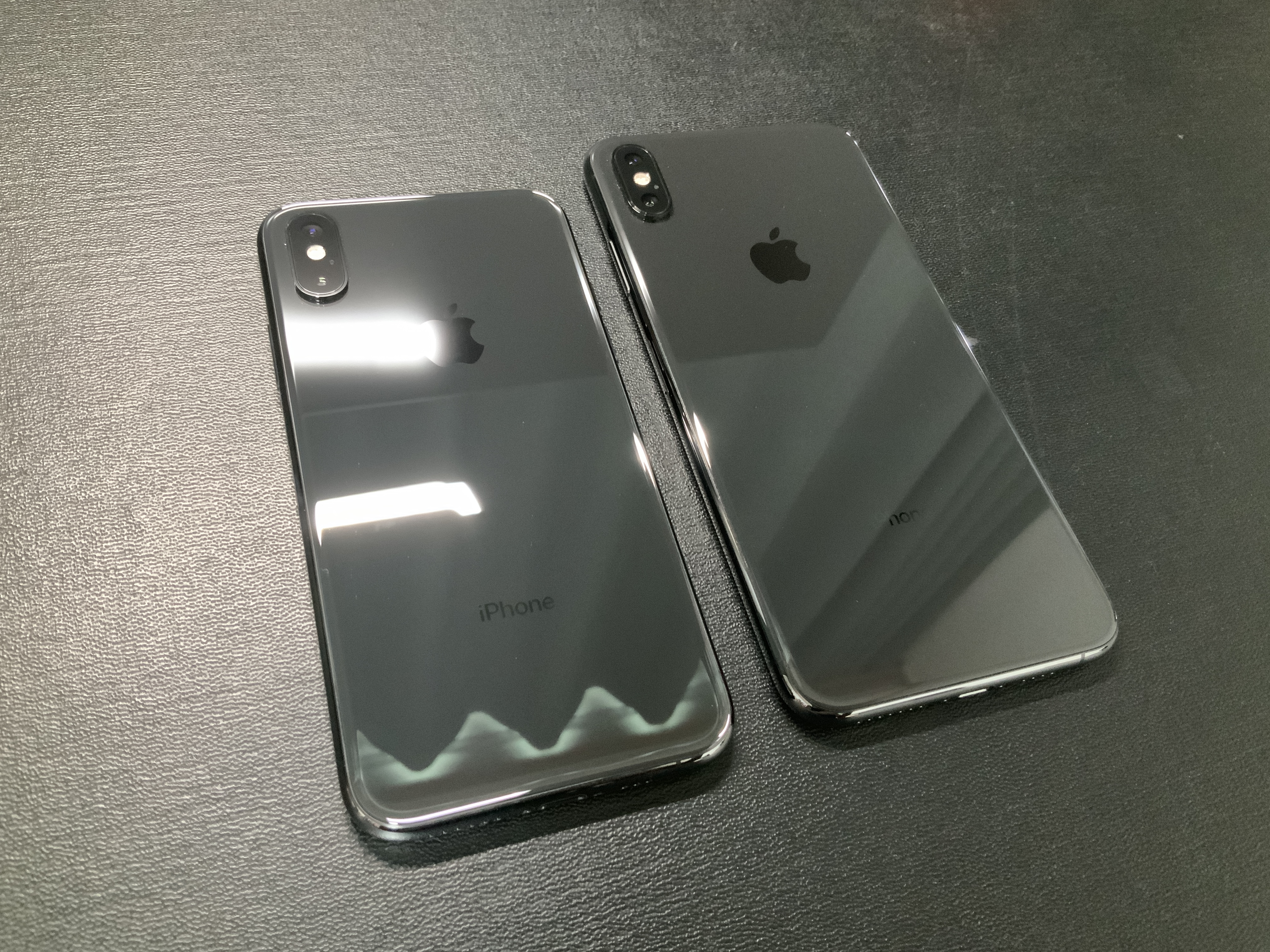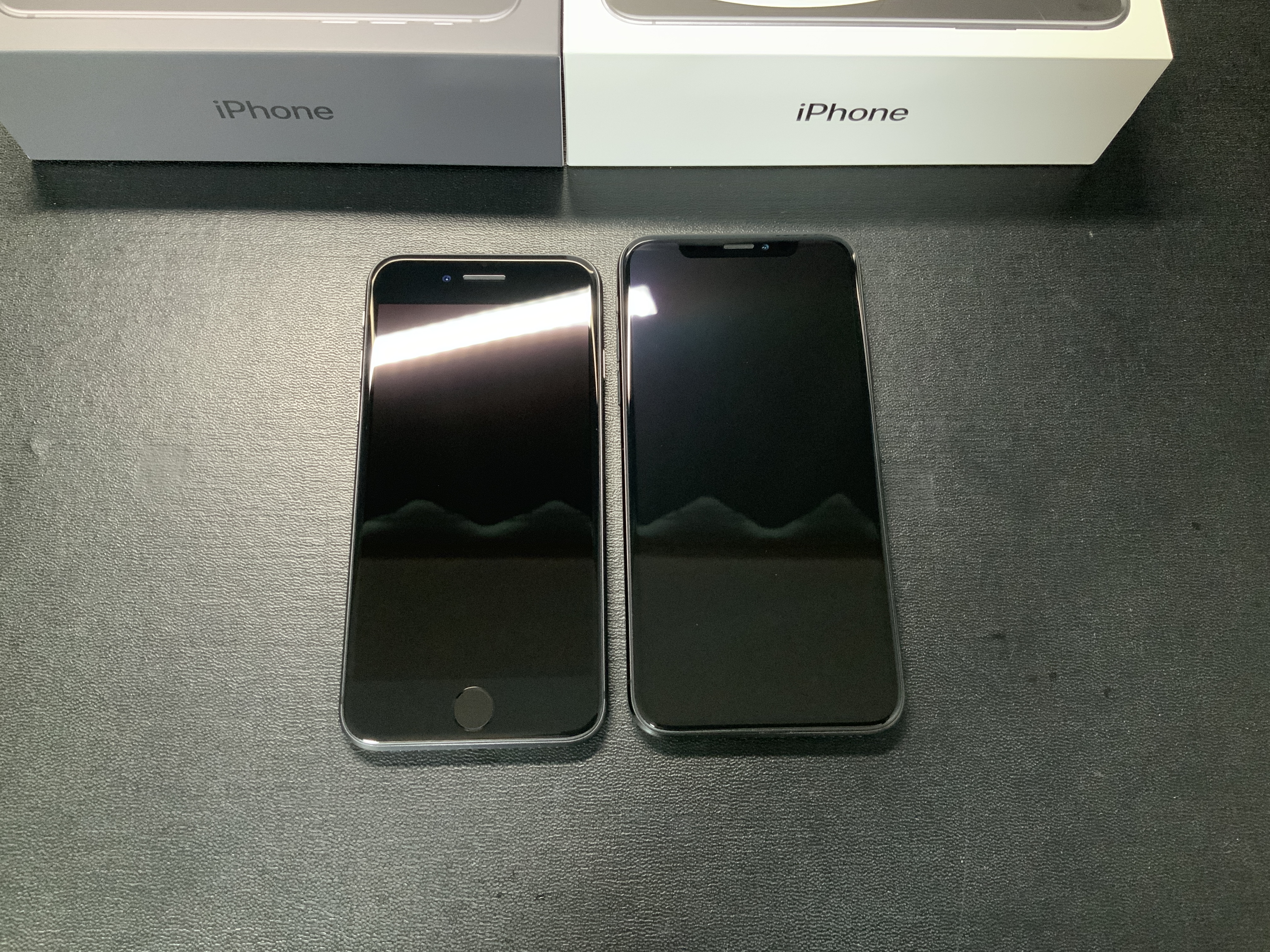 둘 다 같은 스페이스그레이 색상입니다. 후면 유리 처리한 것도 같은데요. 색감이 많이 다릅니다. 아이폰8이 조금 더 깊은 느낌인데요. 빛에 따른 변화도 그렇고, 생폰의 후면 뒷태는 아이폰8이 더 이쁘네요. 하지만! 케이스를 사용하던... 스킨을 부착하던 후면을 직접 볼일은 거의 없으니까요. 크게 의미는 없는 걸로요! ㅎㅎ