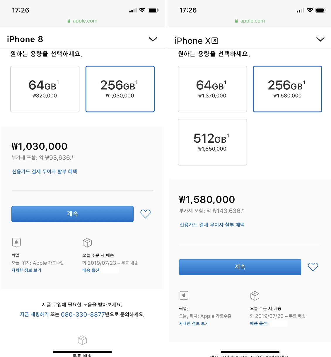 마지막 장점은 가격입니다. 출시 시기를 따지지 않고, 정가로만 봐도 약 30-40%의 가격 차이가 있습니다. 아주 솔직히 가격을 너무 많이 올렸어요. 현시점 정가를 같은 용량으로 비교를 해보면 아이폰xs 256GB 158만 원, 아이폰8 256GB 103만 원입니다. 현시점 기준이긴 합니다만... 중고가 기준으로 비교를 해보면 차이가 더욱 벌어집니다. 지금 산다면 아이폰8은 가격 측면에서 아이폰xs에 비해 상대적으로 굉장히 싸게 느껴지겠죠. 슬픈 장점이에요ㅠㅠ