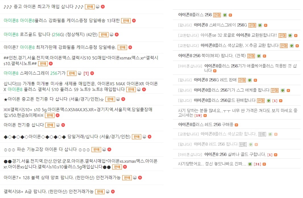 구입을 결정하고 중고나 리퍼 제품을 알아봤어요. 제가 사려고 했던 모델은 스페이스그레이 or 레드 256GB이었습니다. 대략 A급 기준 시세가 40선에 잡혀 있고, 리퍼 제품은 50-60정도 선에서 나오더라고요. 사려고 보면 대부분 가기 힘든 지방이었습니다. 택배 거래를 고려해서 활동 내역을 보면 신뢰도 0에 가까운...ㅠㅠ