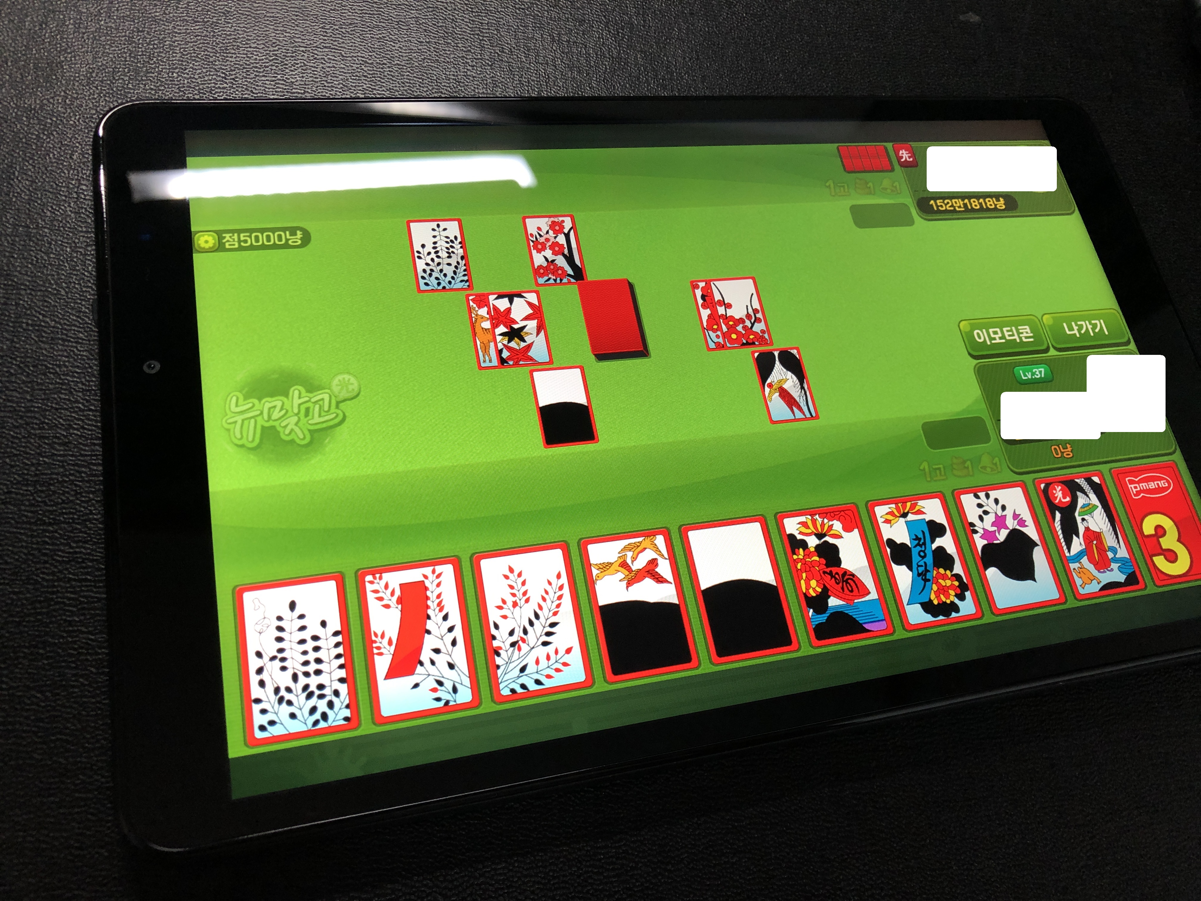 갤럭시탭A8.0을 구입한 마지막 이유는 바로 맞고입니다. ㅎㅎ 아이패드에서는 미국 계정을 통해서만 다운을 받을 수 있고, 제가 키운 밴드 맞고는 없더라고요. 개점휴업 상태였습니다. 탭A를 구입하면서 다시 맞고를 칠 수 있게 됐습니다. ㅎㅎ 큰 이유는 아니지만... ios 제품 쓰면 가장 먼저 생각나는 단점이었거든요. ㅎㅎ