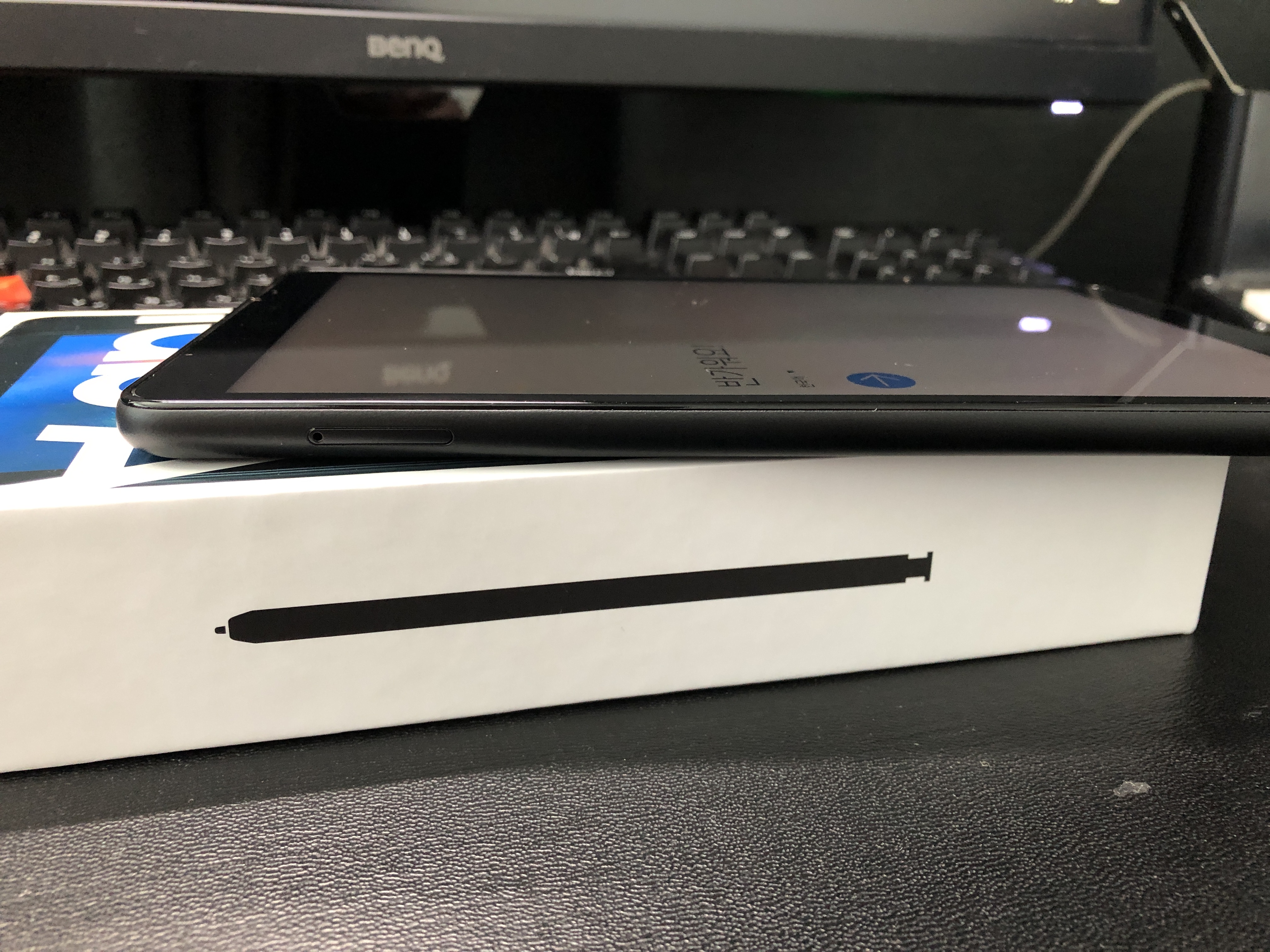 제품 디자인 자체는 기대 이상이에요. 심플하게 잘 뽑았습니다. 블랙 색상을 좋아하는 만큼 올블랙에서 오는 일체감이 특히 마음에 들었습니다. 전면 베젤도 더 얇게 느껴집니다. 후면은 넥서스5 느낌이라고 해야 할까요. 고무 느낌의 재질입니다. 하단에는 USB C타입 충전 단자가 있고요, S펜이 바로 옆에 내장되어 있습니다. 왼쪽에는 유심 및 sd카드 슬롯이 있는데요. 와이파이 모델인 만큼 sd카드 공간만 있습니다. 우측에는 전원 키와 볼륨 키가 같이 있어요. 상단에는 놀랍게도 3.5mm 이어폰 단자가 살아남았습니다.