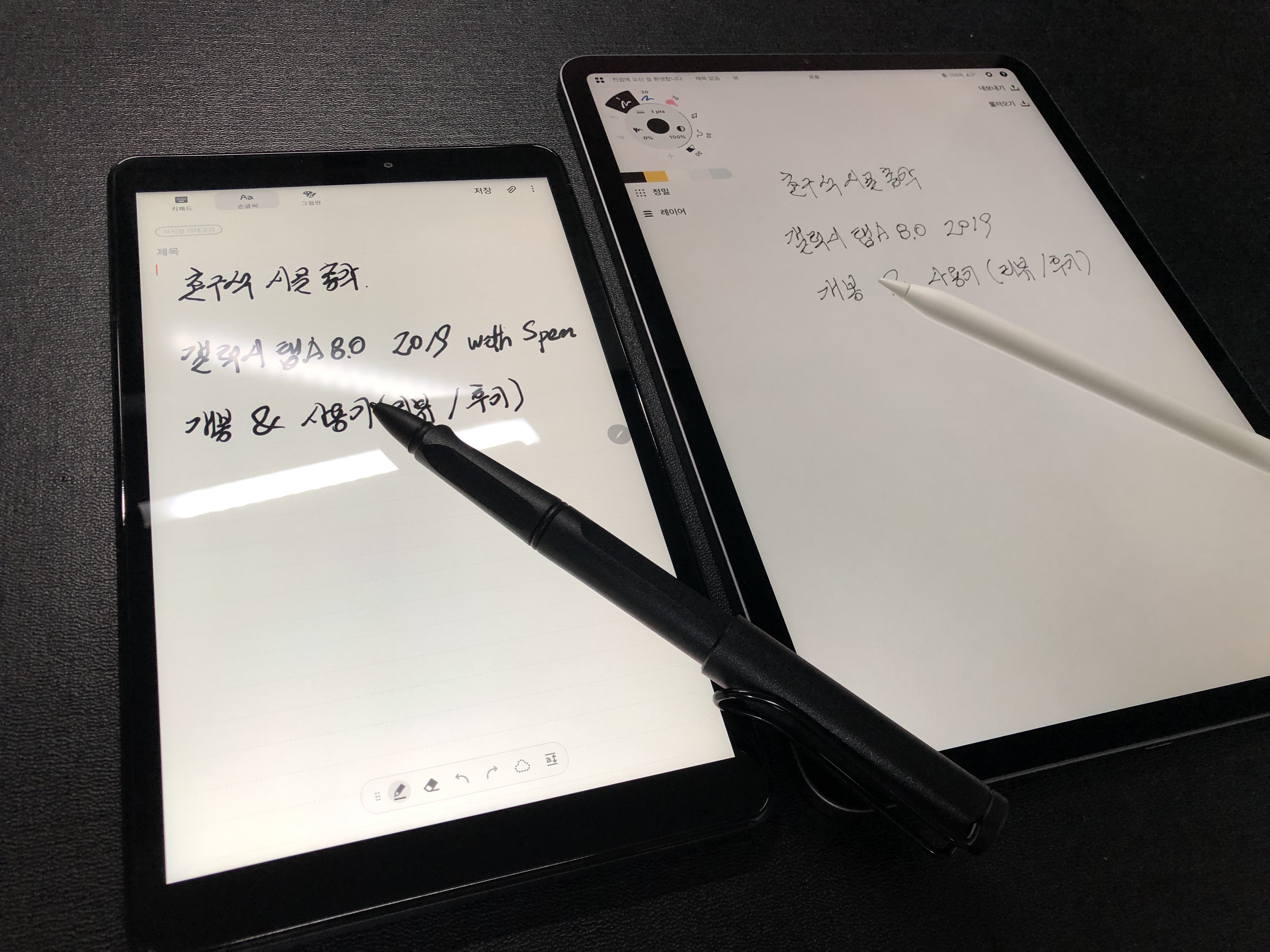 초반에 필기를 하는데 약간의 딜레이가 있어서 놀랐었어요. 단순히 생긴 오류였는지는 모르겠습니다만... 그 이후로는 딜레이가 없었습니다. 필기감을 진짜 좋아요. 특히 애플펜슬과 비교하면 그 차이가 매우 큽니다. 판형이 매우 얇은 아이패드 3세대에서는 더욱 애플펜슬이 통통거리는 느낌을 받습니다. 그에 반해 s펜은 실제 펜으로 필기하는 것과 상당히 유사한 느낌을 줍니다. 이번 모델도 다르지 않았어요. 그만큼 필기감이나 터치감 등은 비교가 안 됩니다.
