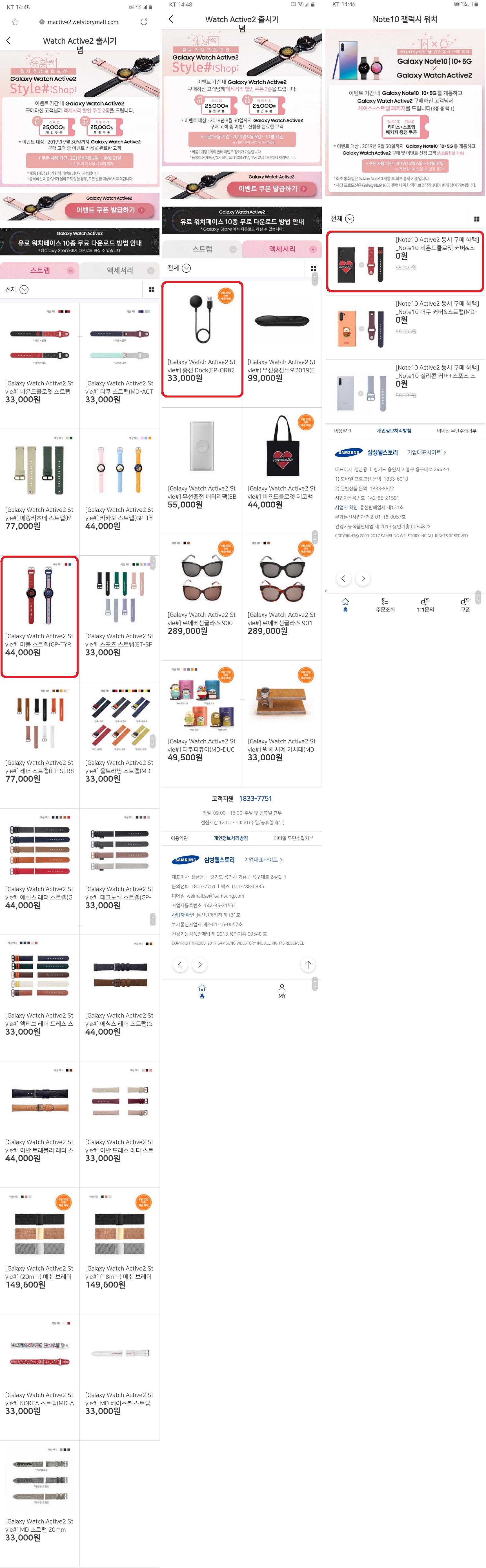 마지막으로 늘 그랬듯. 이번에도 신제품 런칭 이벤트를 많이 진행합니다. 워치 단독 이벤트도 있고요. 갤럭시노트10과 동시 구매 시 추가 혜택이 있습니다. 위 이미지는 고를 수 있는 제품들의 목록과 제가 선택한 스트랩과 액세사리들이에요. 추석 연휴가 끼어서 실제 수령까지는 제법 시간이 필요할 것 같습니다.