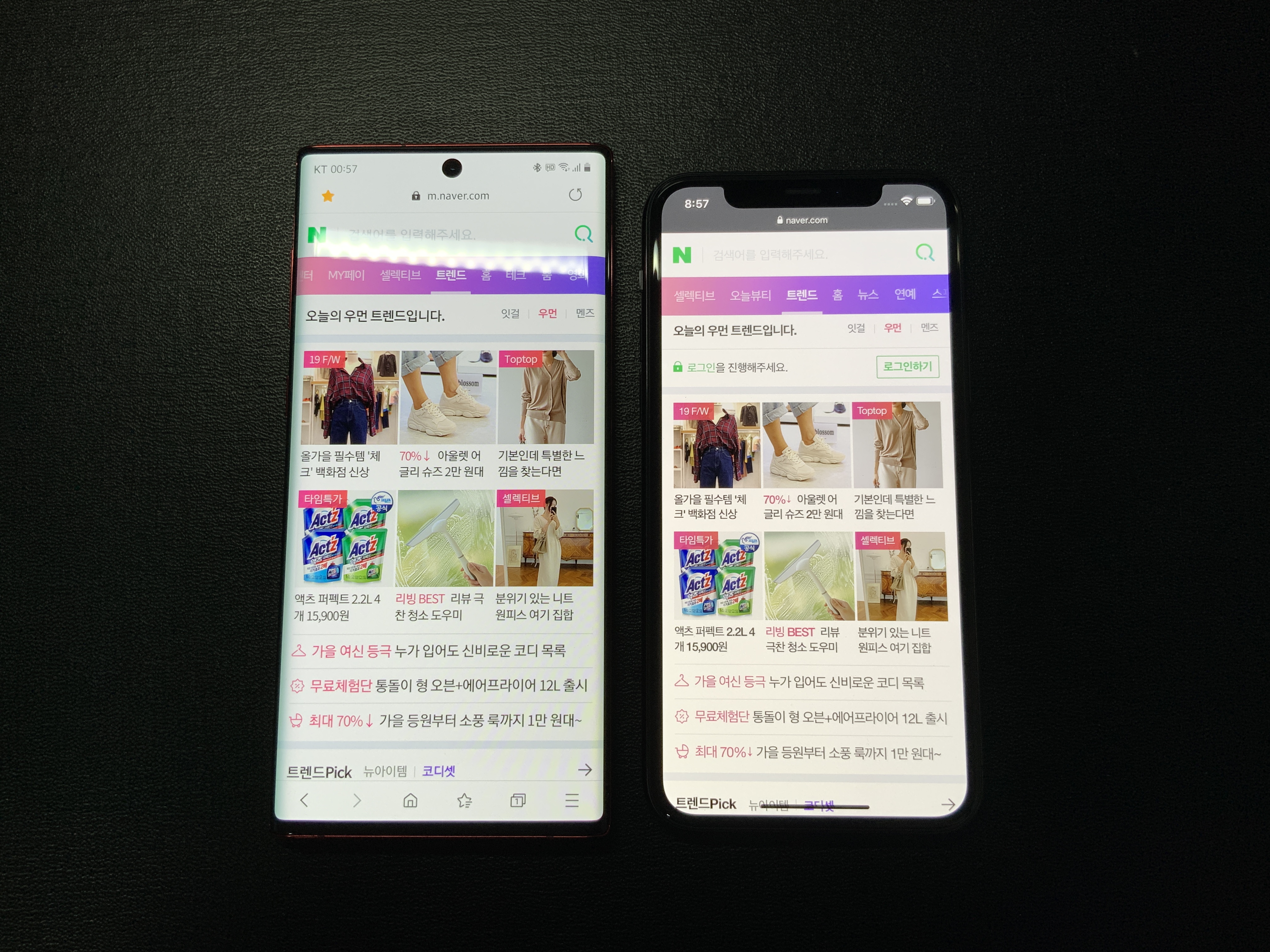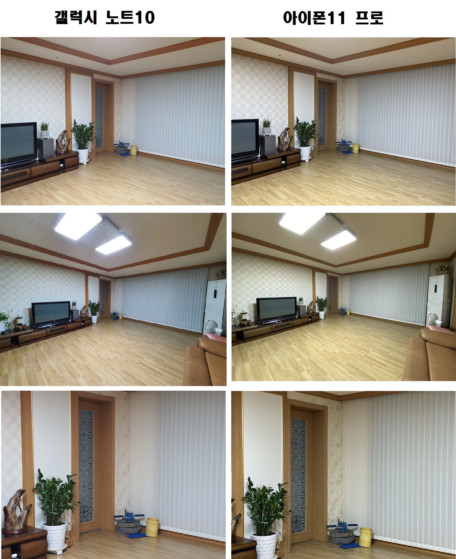 실내 촬영 시 광각의 심각한 왜곡은 어쩔 수 없는 부분 같아요. 노트10이 더 심하다 여겼는데... 재 촬영 결과 두 기기가 비슷합니다. 폰카의 한계라고 봐야 할까요. 굳이 따져 비교해보면... 노트10 왜곡이 조금 더 있는 편이긴 합니다.