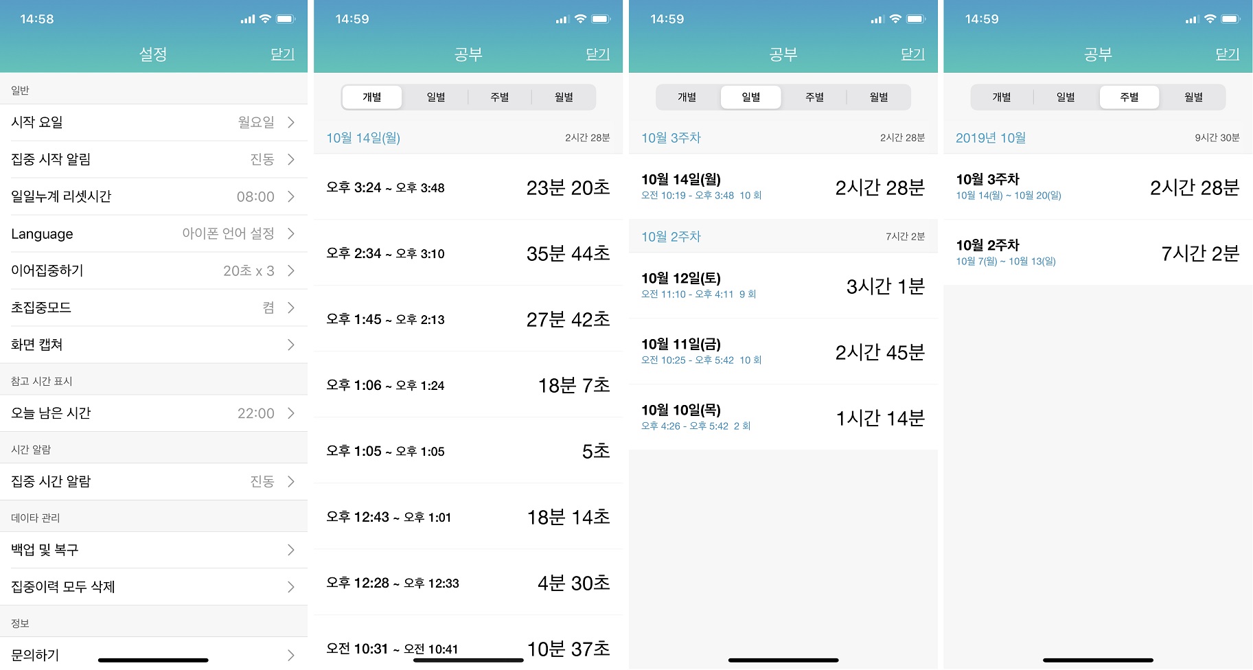 위 실사용 기록 이미지를 보면 짧게 끊긴 부분이 많습니다. 아무래도 업무상 폰을 들어야 할 때가 많으니까요. 길게 길게 집중을 못 하게 되더라고요. 1년 넘게 독서생활을 쉬고 있는데요. 틈틈이라도 다시 책을 읽고자 해요. 이 어플을 독서생활에도 이용할 수 있을 것 같습니다.