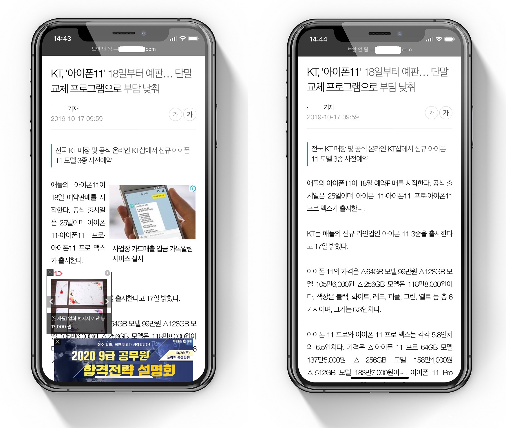 위 예시를 보면... 광고 제거로 인해 한 화면에 표시되는 정보량도 엄청 차이가 납니다.
