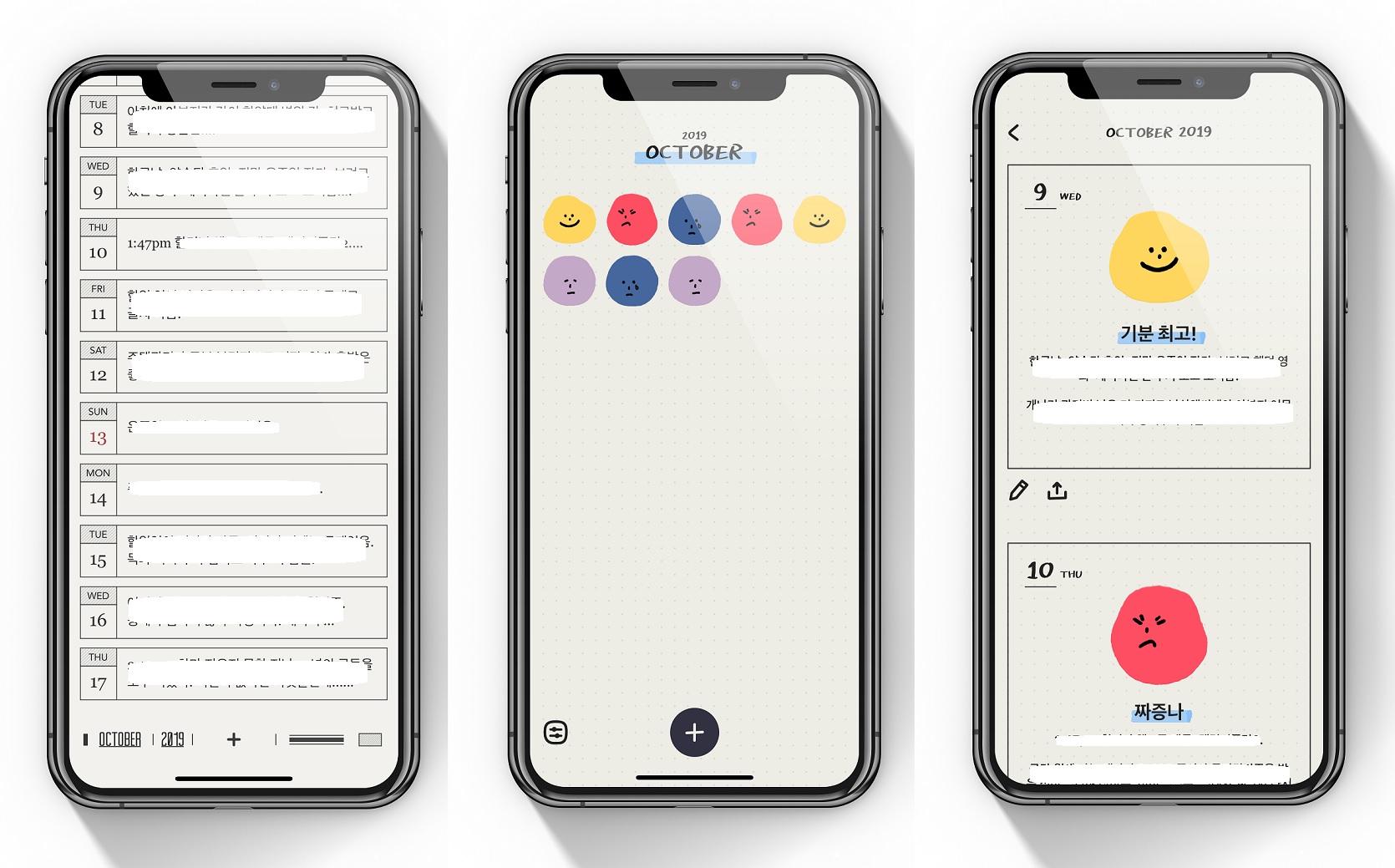 데이그램 & MOODA. 이전에는 에버노트에 그냥 일기를 작성했었는데요. 데이그램의 심플함을 보고 바로 갈아탔습니다. 꾸준히 잘 사용하다 최근 만난 어플 무다. 매일매일의 감정을 표시하는 방식인데요. 이게 일주일이면 일주일, 한 달이면 한 달을 돌아볼 때... 내가 어땠는지 한눈에 알 수 있겠더라고요.