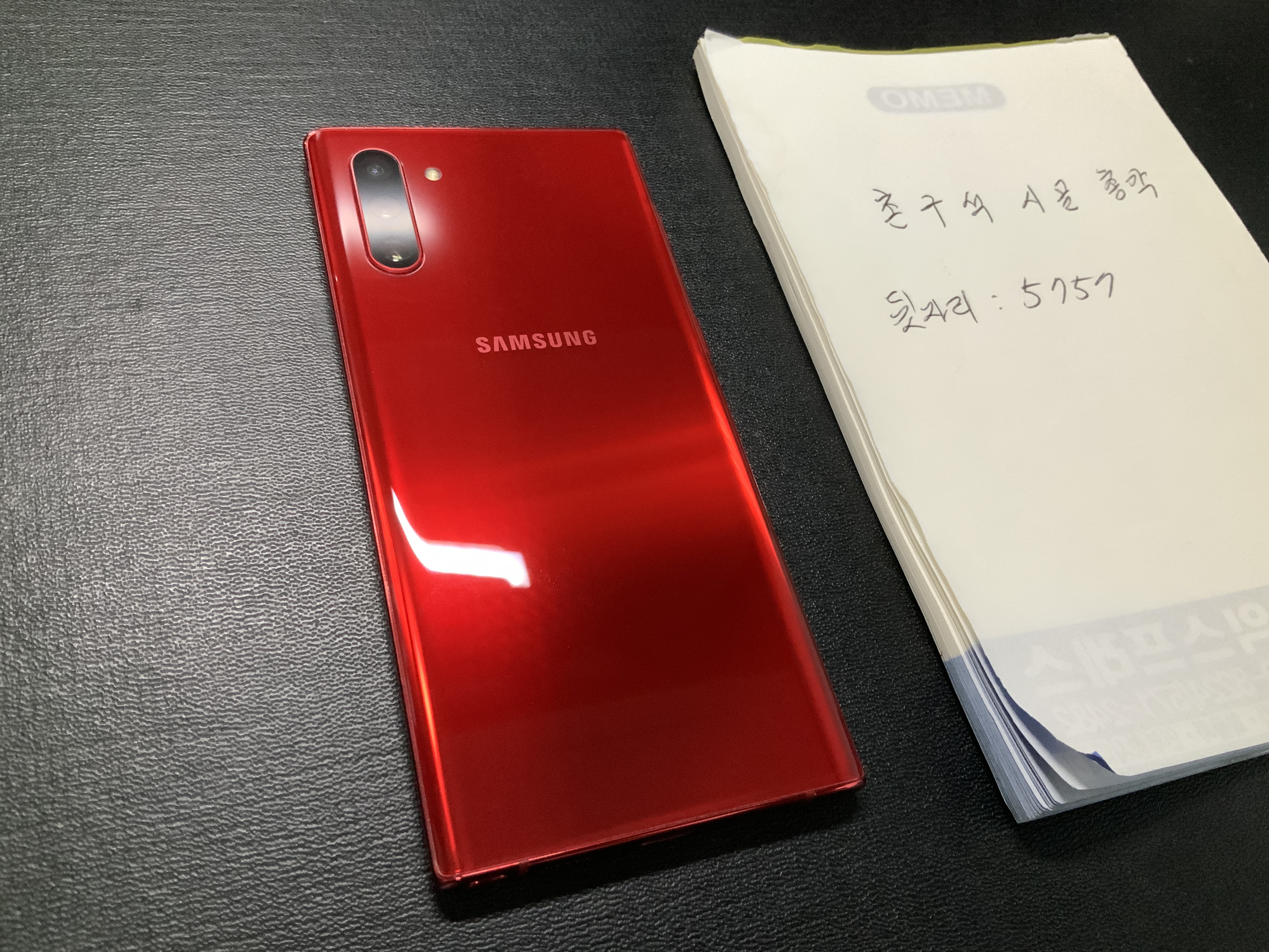 노트10 레드 본체는 흠집 없이 매우 양호한 상태입니다. 기본 부착된 전, 후면 필름은 모두 제거했어요. 풀박스이며, 구성품 모두 미사용입니다.