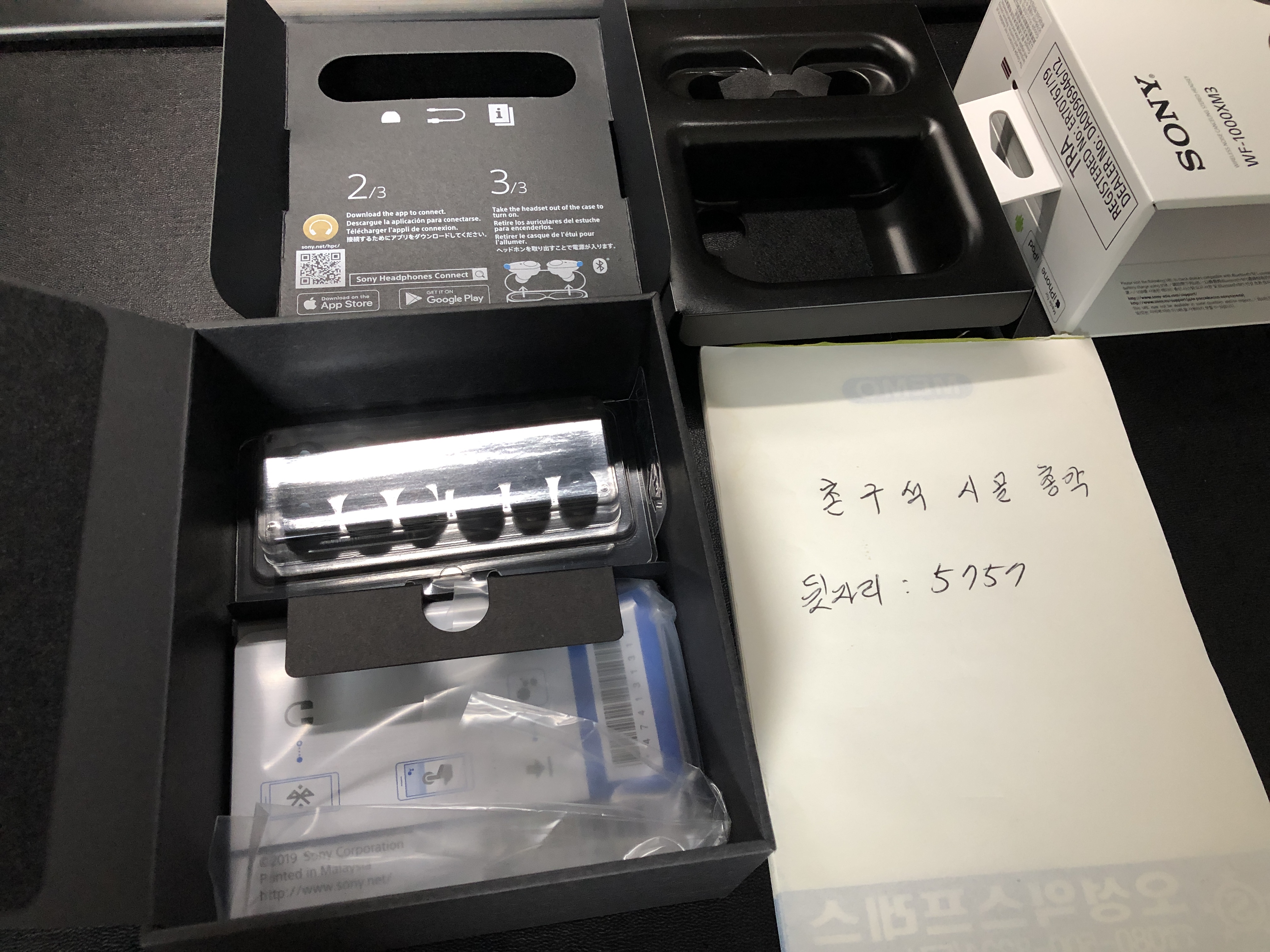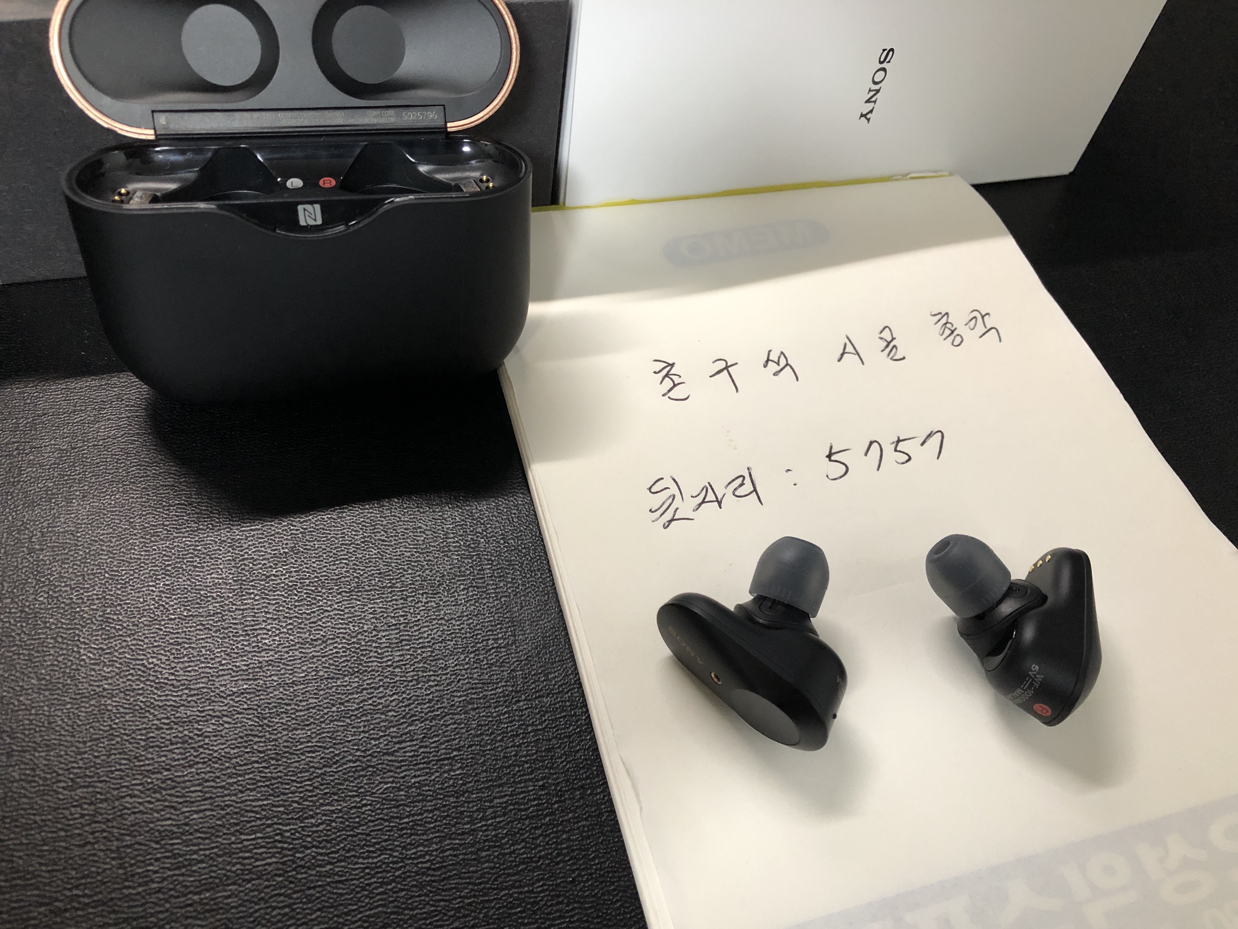 2019년 07월 11일 소니코리아 공식 온라인스토어에서 구입한 소니코리아 정품 WF-1000XM3 블랙 모델입니다. 구성은 풀박스이며, 스티커 부착한 영수증 동봉합니다. 정품 등록 안한 상태에요.