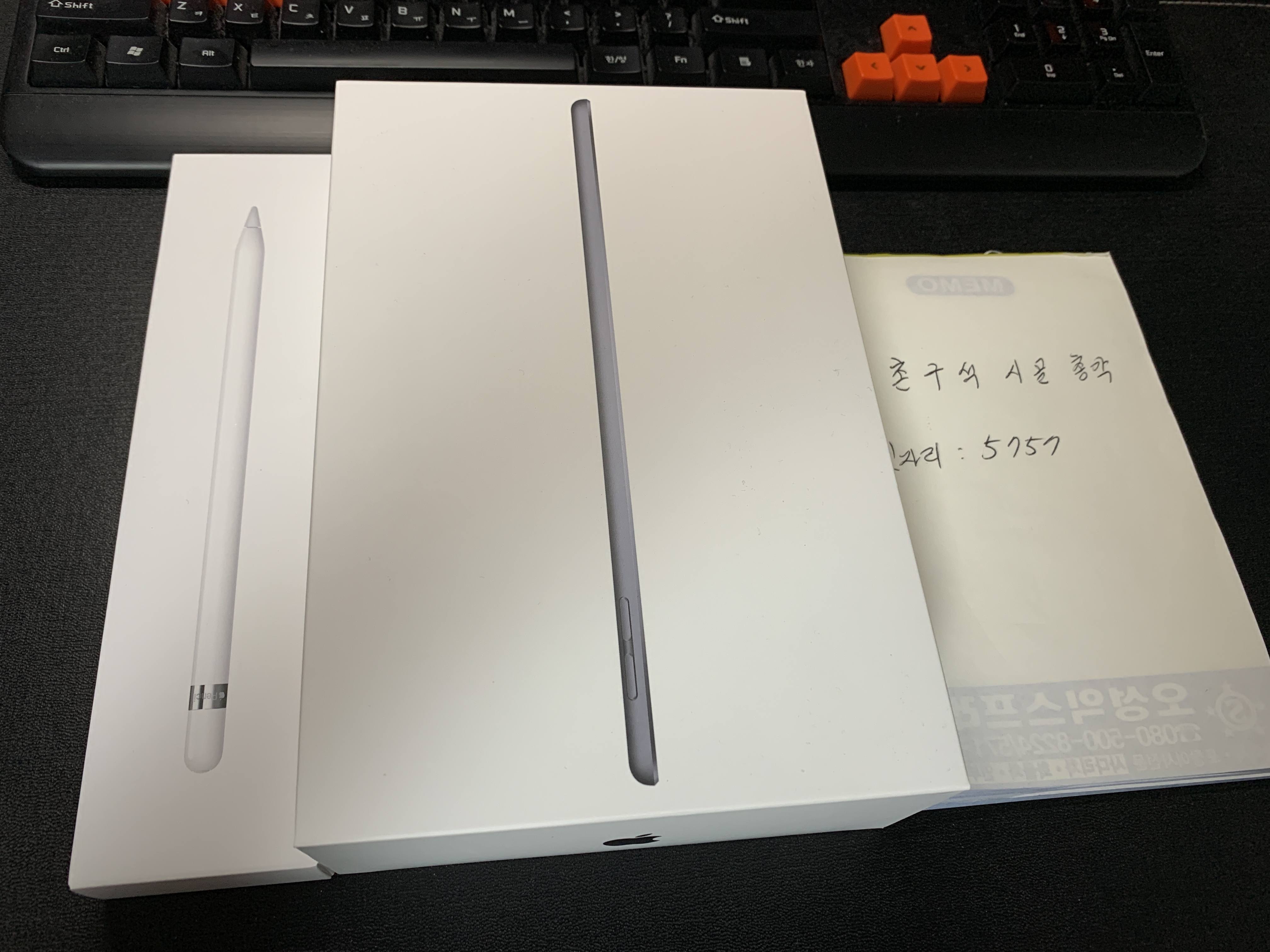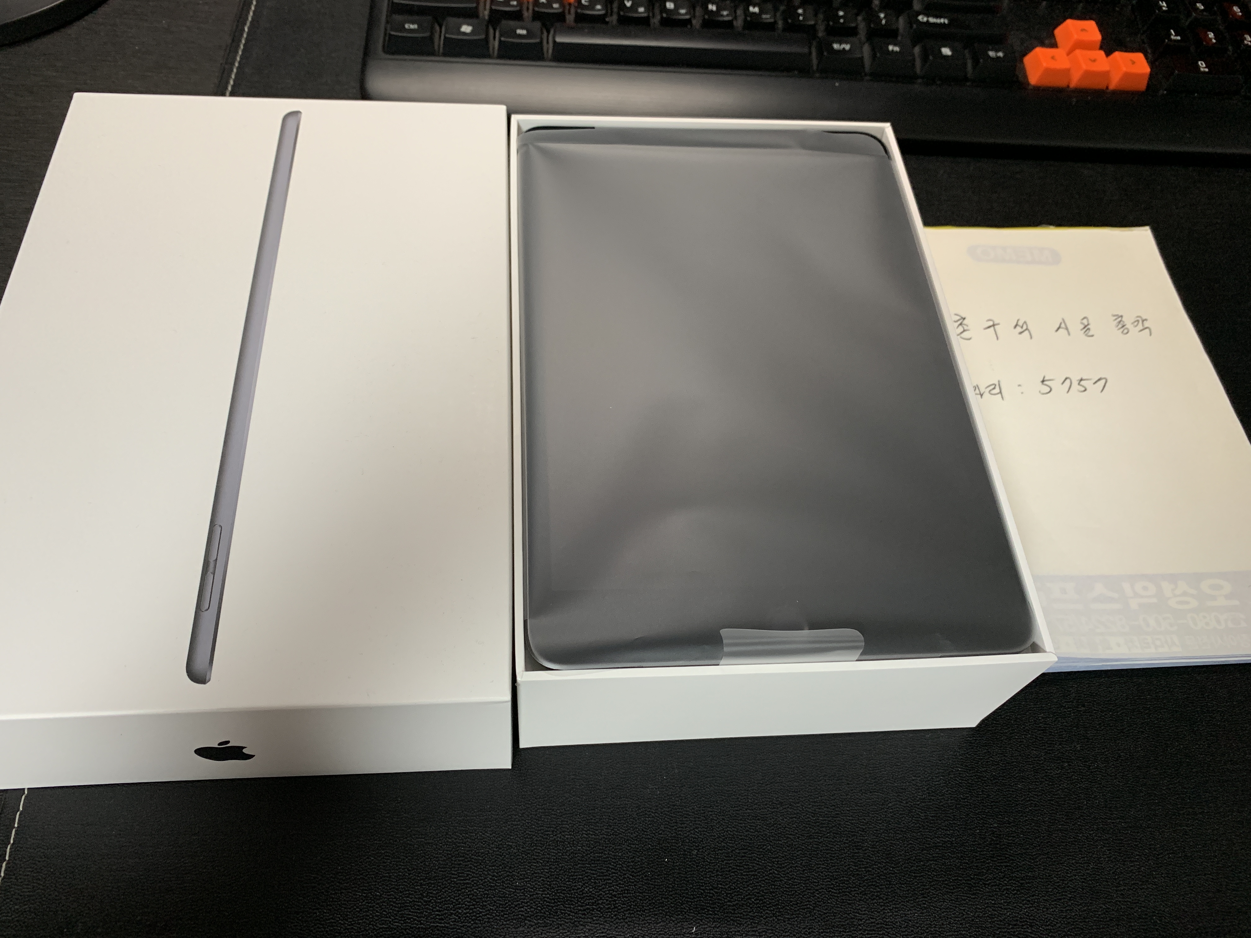 미니5와 애플펜슬 1세대 모두 4월 24일에 애플 공식 온라인 스토어에서 구입한 제품입니다. 보증기간은 2020년 4월 말경입니다. 구성은 아이패드 미니5 와이파이 스페이스그레이 256GB 풀박스 + 애플펜슬 1세대 풀박스 + 주문 제작 전용 파우치 2개입니다.