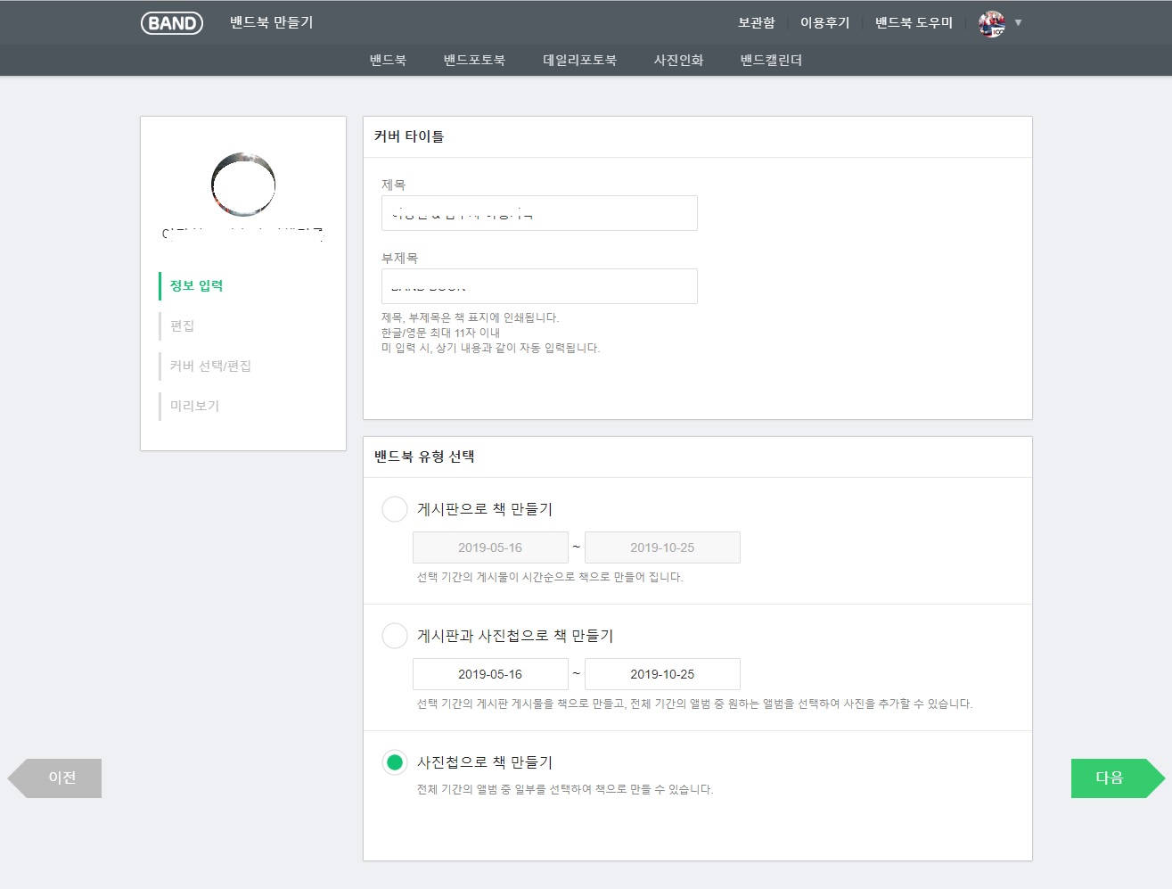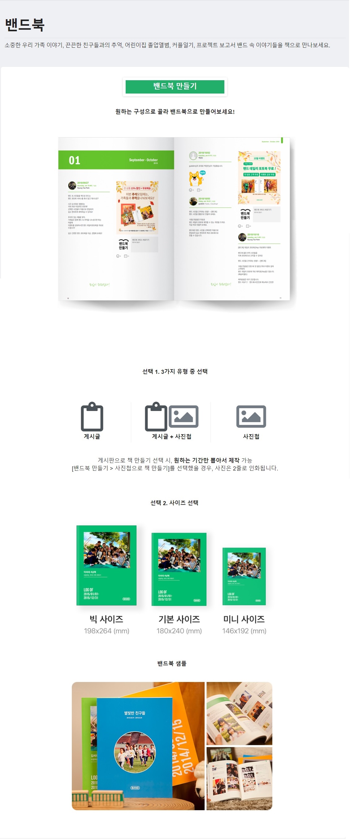 밴드북은 네이버 어플 밴드의 사진과 글을 중심으로 만든 책을 말합니다. 스마트폰에서도 제작 및 주문이 가능하고요. PC에서도 가능합니다. 개인적으로 작은 화면의 모바일보다 PC 화면에서의 제작 및 주문을 추천합니다.