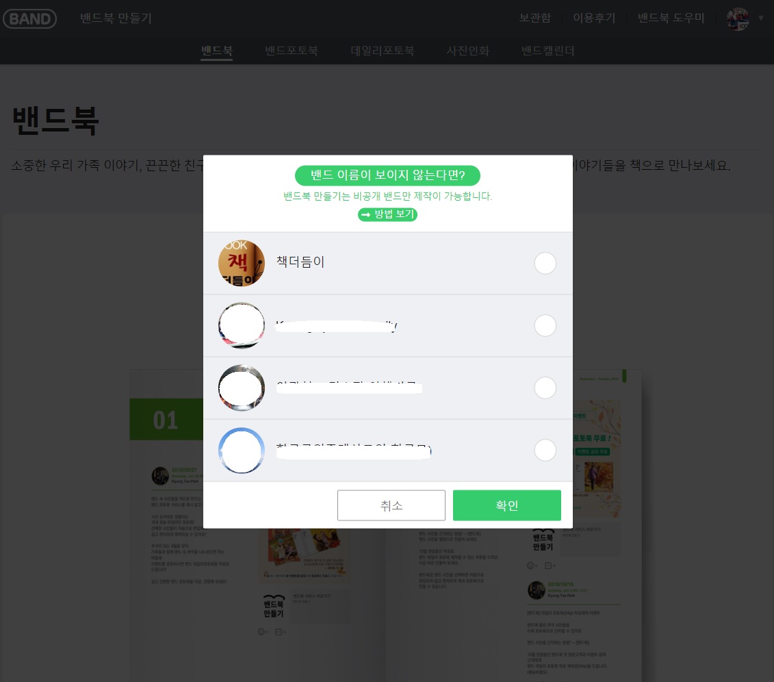 밴드북은 반드시 '비공개 밴드'에서만 제작할 수 있습니다. 이 점은 약간 의아하면서도 아쉬운 부분이에요. 오히려 반대의 경우가 맞지 않나 싶기도 한데요. ㅎㅎ 뭔가 이유가 있을 거라 생각합니다.