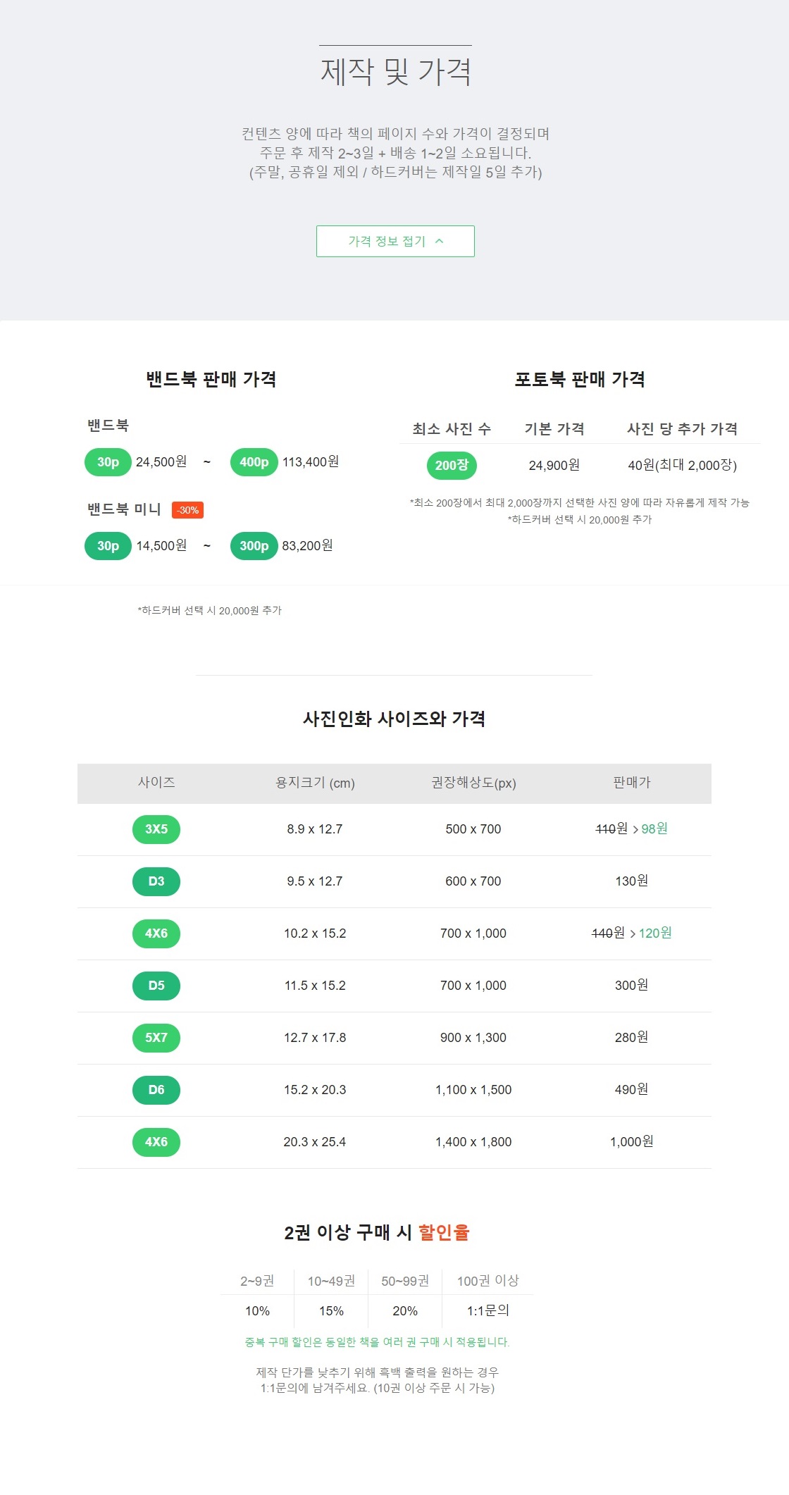 가격은 사실 만만치 않습니다. 사진과 글을 책으로 만들어주는 서비스는 의외로 많이 있는데요. 그 가격과 단순 비교했을 때 거의 두 배에 달합니다. 그럼에도 밴드북을 만드는 이유는 두 가지에요. 편리성과 책 퀄리티입니다.