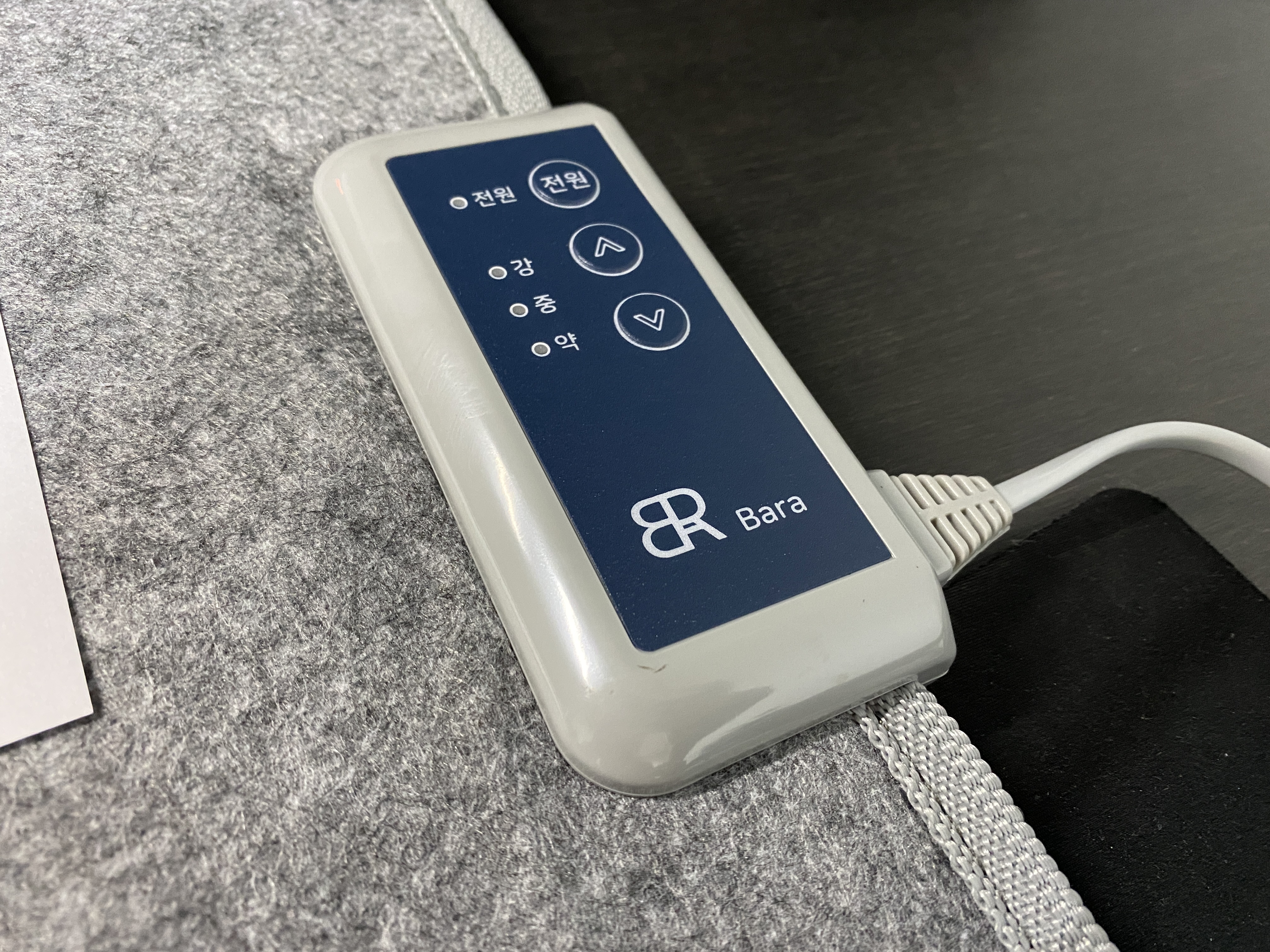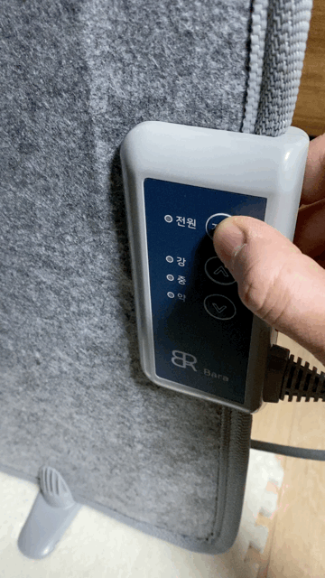 조작은 매우 간단합니다. 제품을 세우고 전원 연결한 후 강, 중, 약으로 온도 설정을 하면 끝!(1단 45도, 2단 55도, 3단 65도)