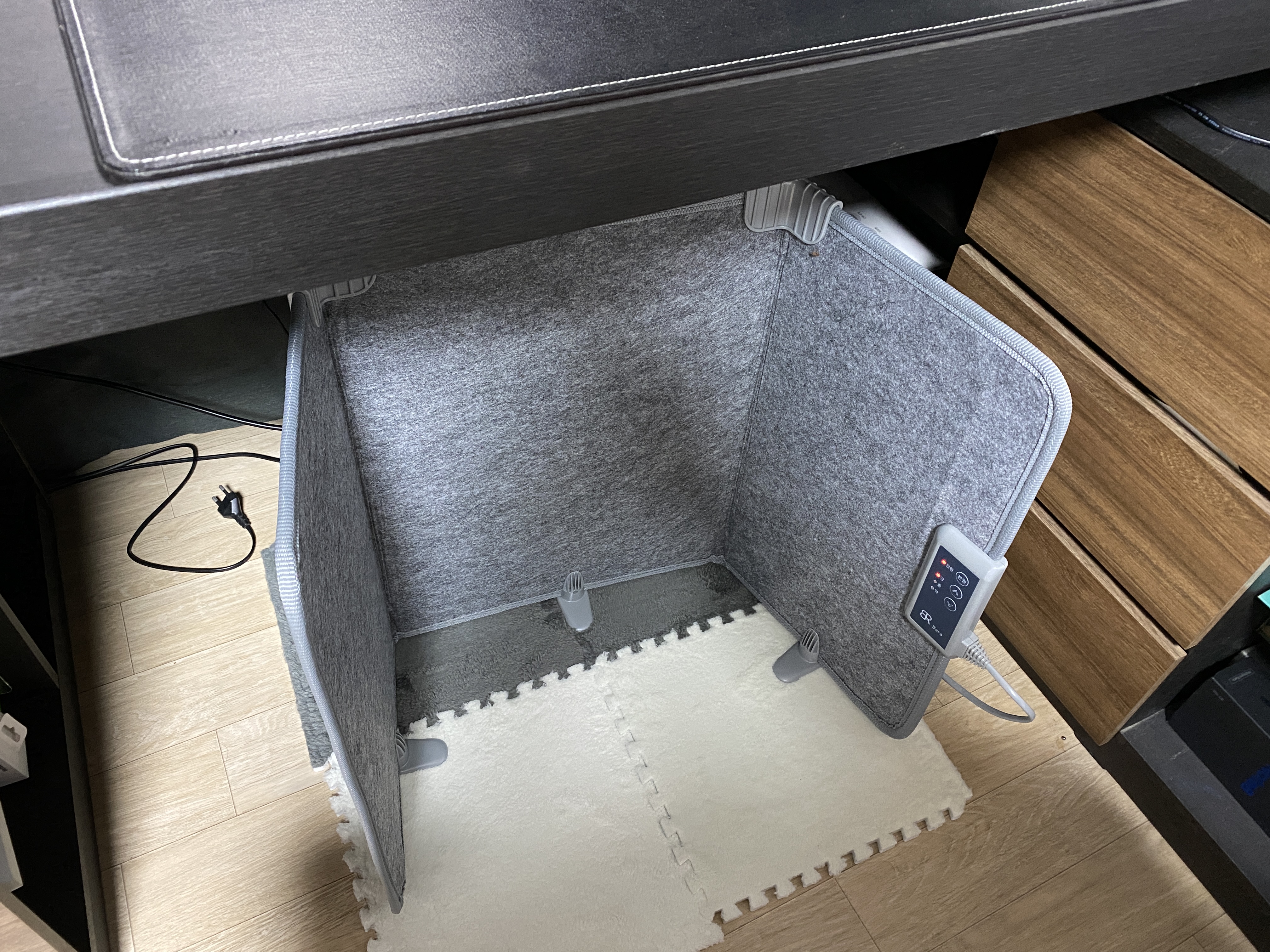 전 책상 밑 공간에서만 사용을 하는데요. 파티션 형식이다 보니 우풍이 있는 창문 등에 배치해도 괜찮겠다 싶었습니다. 일반 가정에서 사용도 가능하니까요. 다양하게 활용이 되지 않을까 싶었습니다.