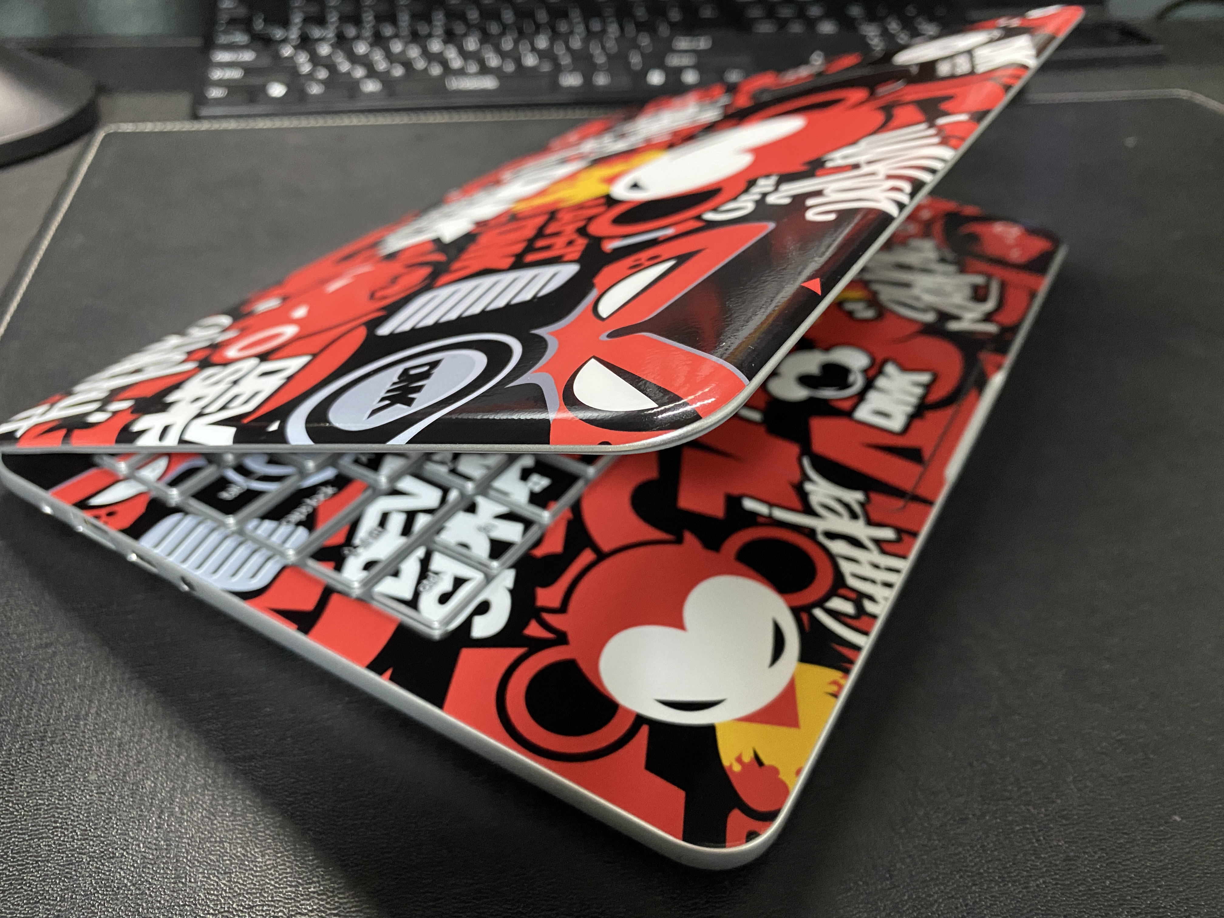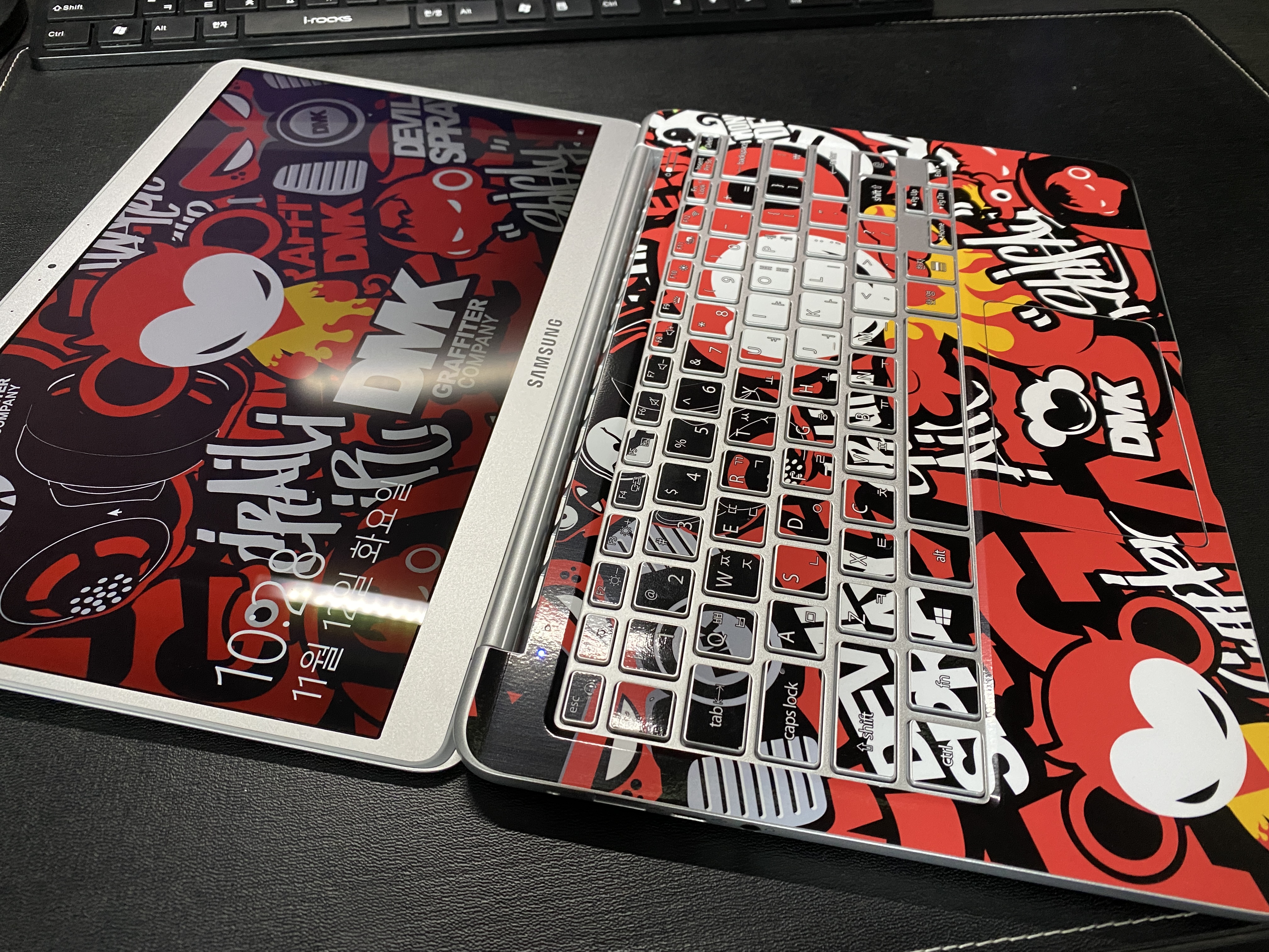 이번에는 스마트폰에만 붙이던 주문 제작 팝스킨을 노트북에도 부착을 했어요. 지난 포스트( http://naver.me/xbc9DPOO )와 중복됩니다만 마지막으로 부착한 스킨 이미지를 첨부하면서 글 마무리합니다.