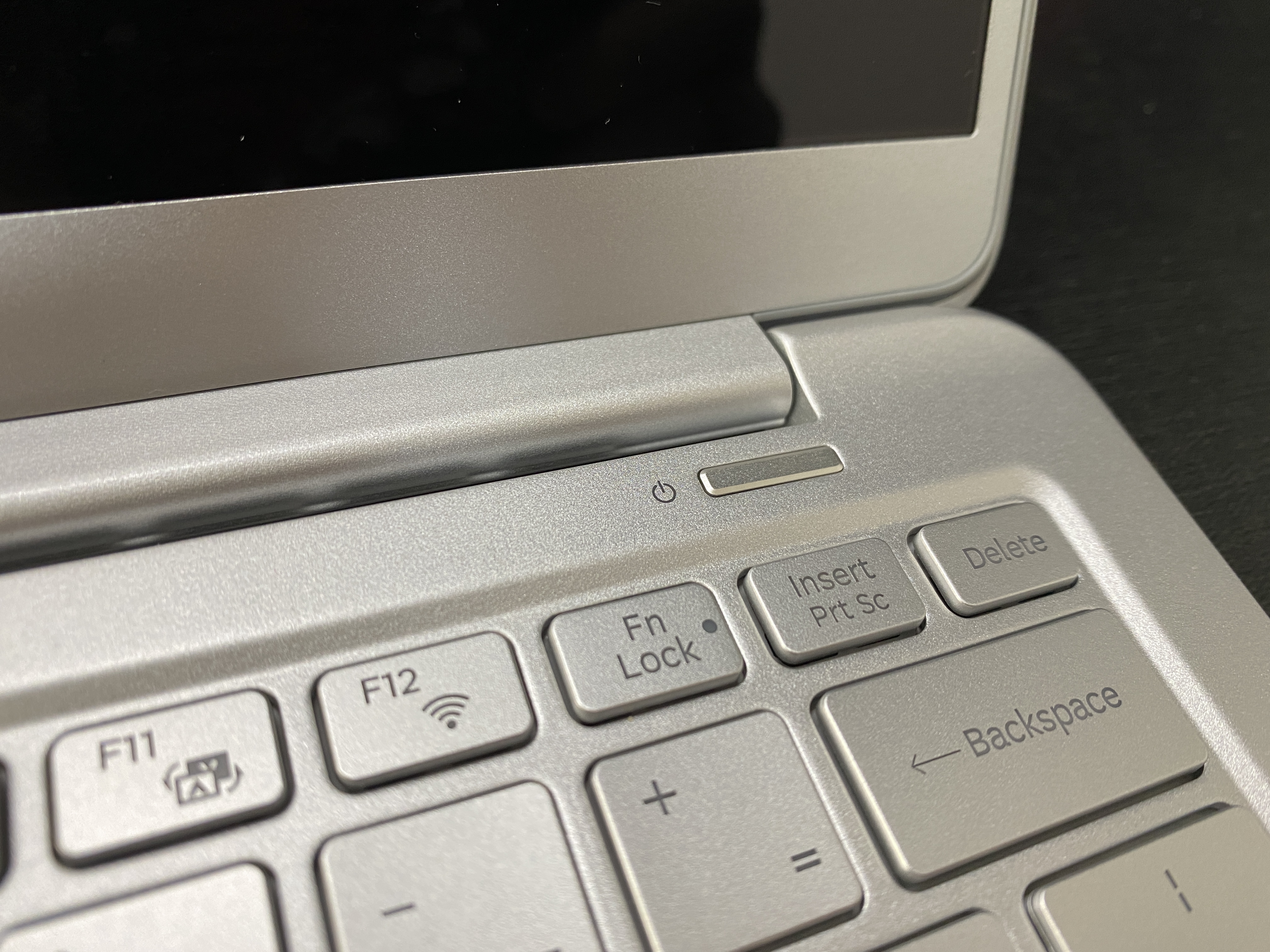 이 제품에서 개인적으로 좋았던 점 두 가지는 전원 버튼 위치와 터치패드였습니다. 우측 상단 Delete 위치에 전원 버튼이 있는 경우가 많았었어요. 실수로 누르는 경우가 굉장히 많았죠. 위에 별도로 위치하다 보니... 사용하면서 실수로 누른 적이 한 번도 없습니다. 버튼 눌렀을 때 동작에 차별을 주는 경우도 있지만... 이렇게 위치로 조정하는 게 가장 좋지 싶습니다.
