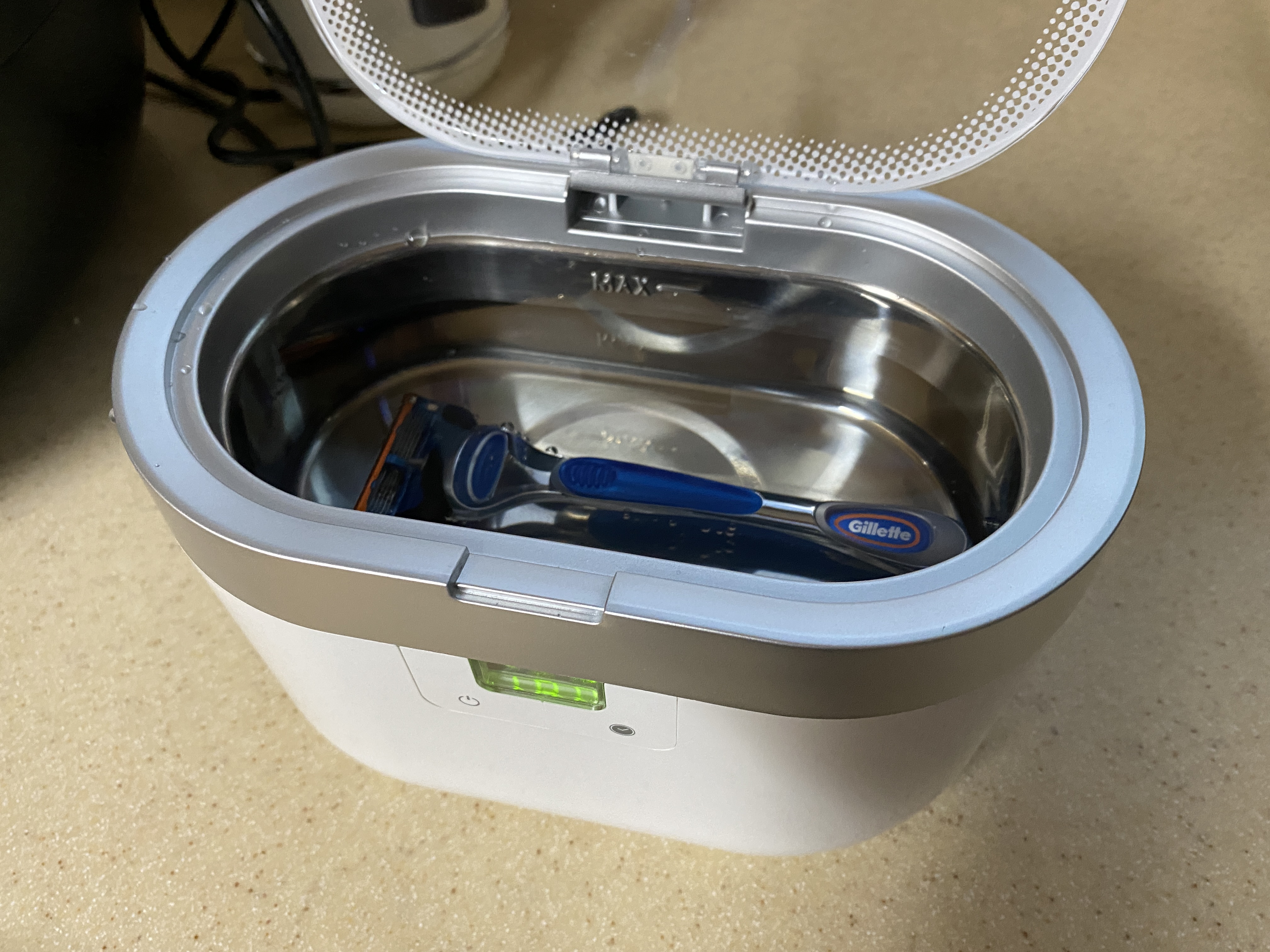 세척이 가능한 제품은 다양한데요. 대표적으로 안경과 면도기, 치과 관련 용품들 등입니다. 전 안경과 면도기 세척 시 사용하고 있습니다.