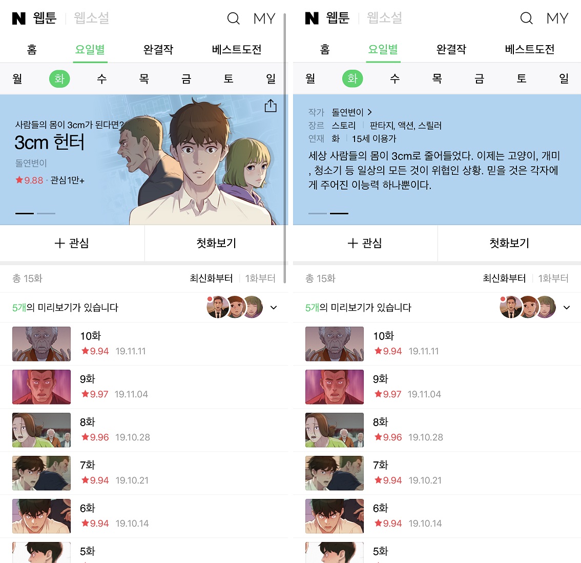 | [2019년 11월 기준] 취향 따라! 네이버웹툰 토요일 연재작 리뷰 (후기/추천) (0) | 2019.12.07 |