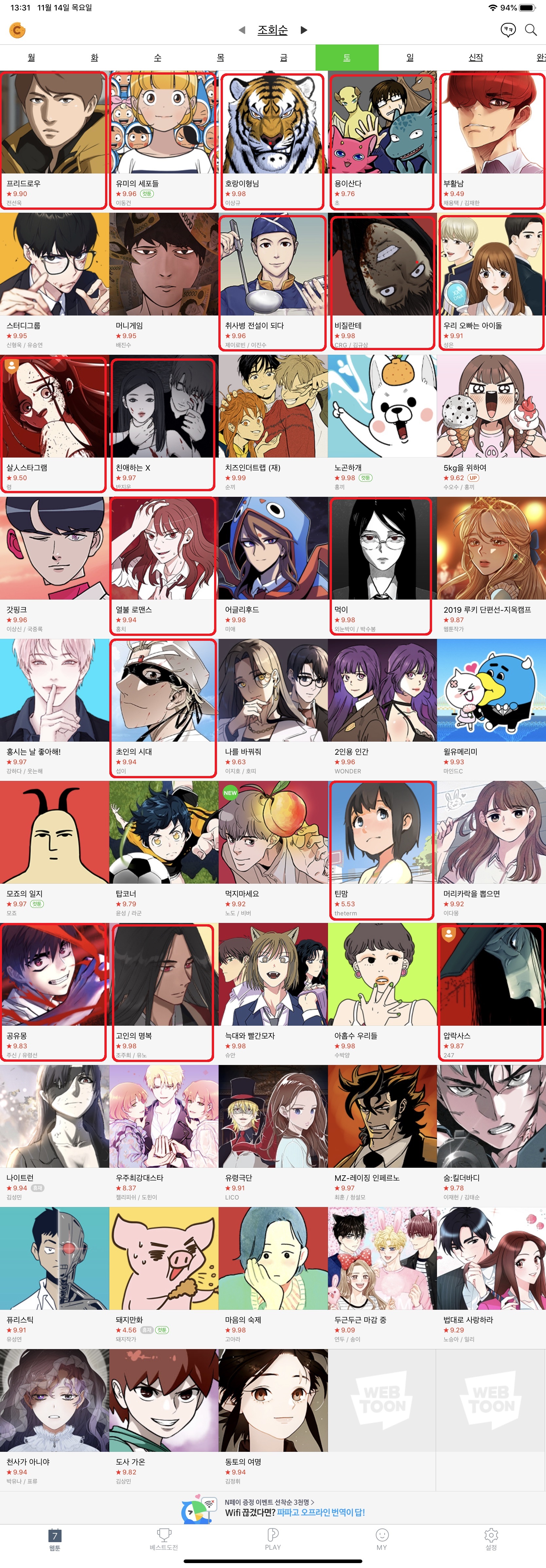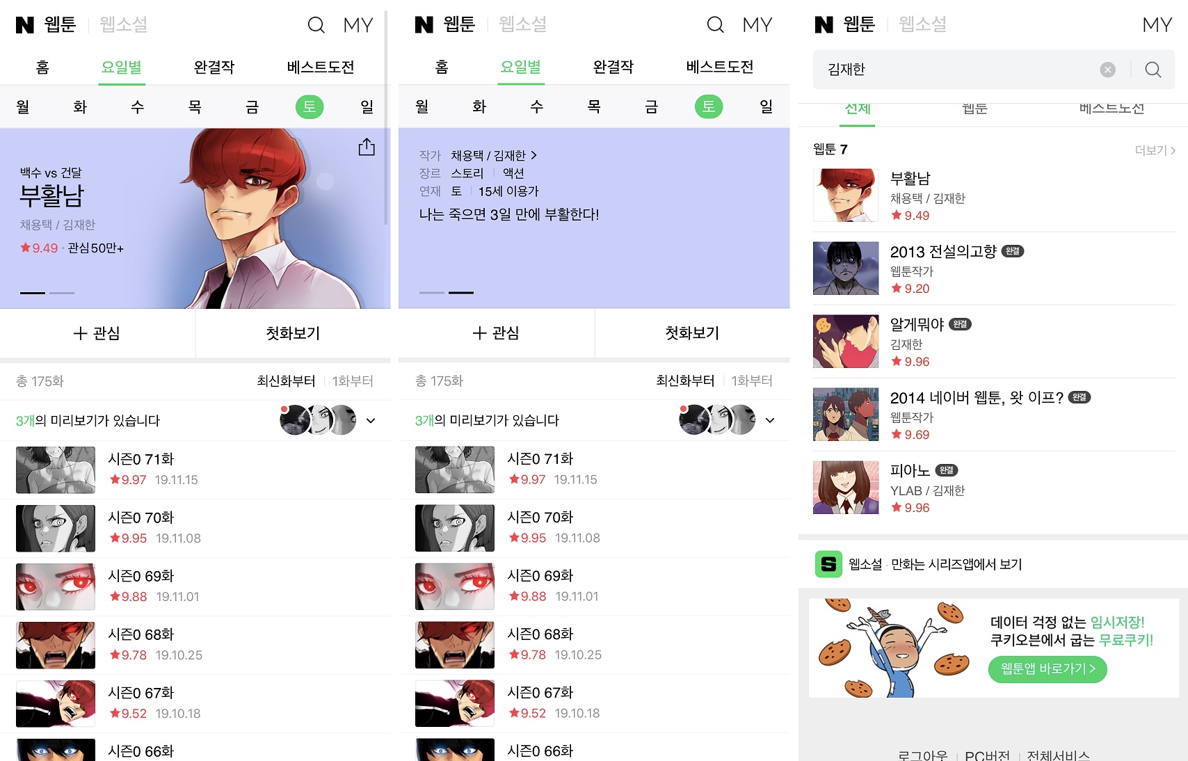 | [2019년 11월 기준] 취향 따라! 네이버웹툰 목요일 연재작 리뷰(후기/추천) (0) | 2019.12.05 |