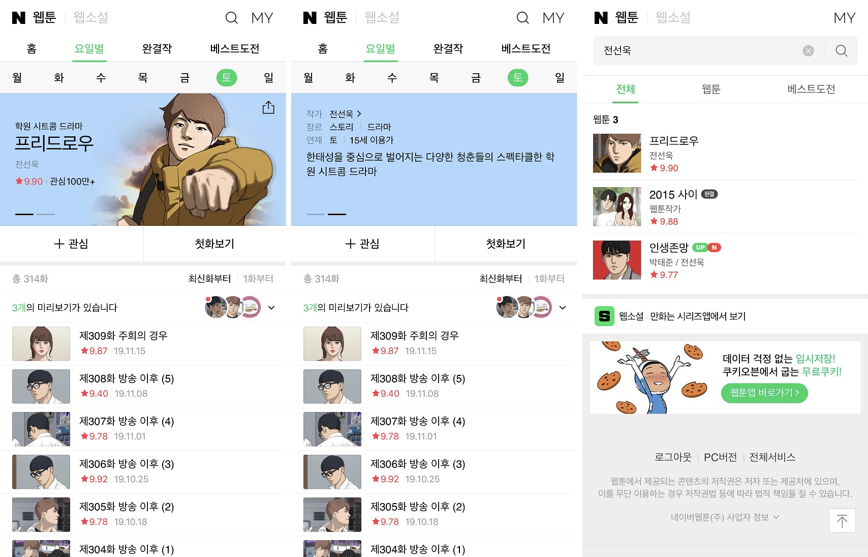 | [2019년 11월 기준] 취향 따라! 네이버웹툰 금요일 연재작 리뷰 (후기/추천) (0) | 2019.12.06 |