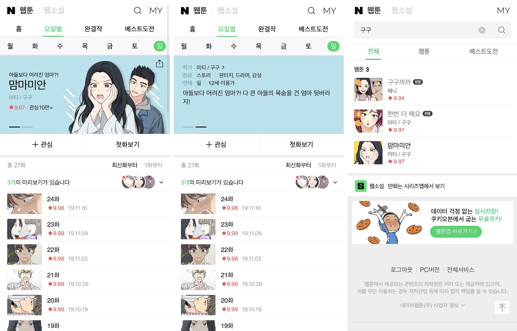 | [2019년 11월 기준] 취향 따라! 네이버웹툰 화요일 연재작 리뷰(후기/추천) (0) | 2019.12.03 |