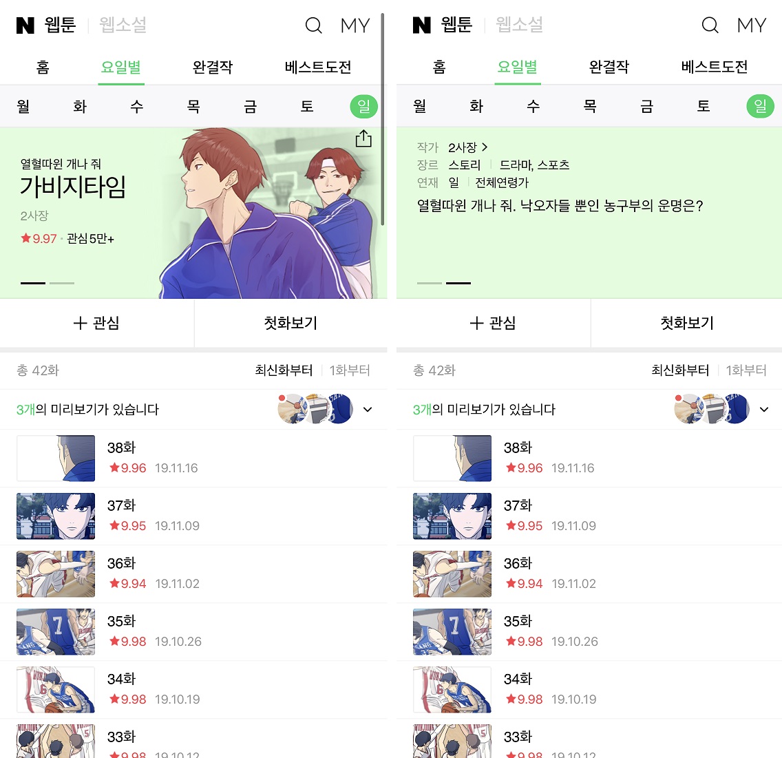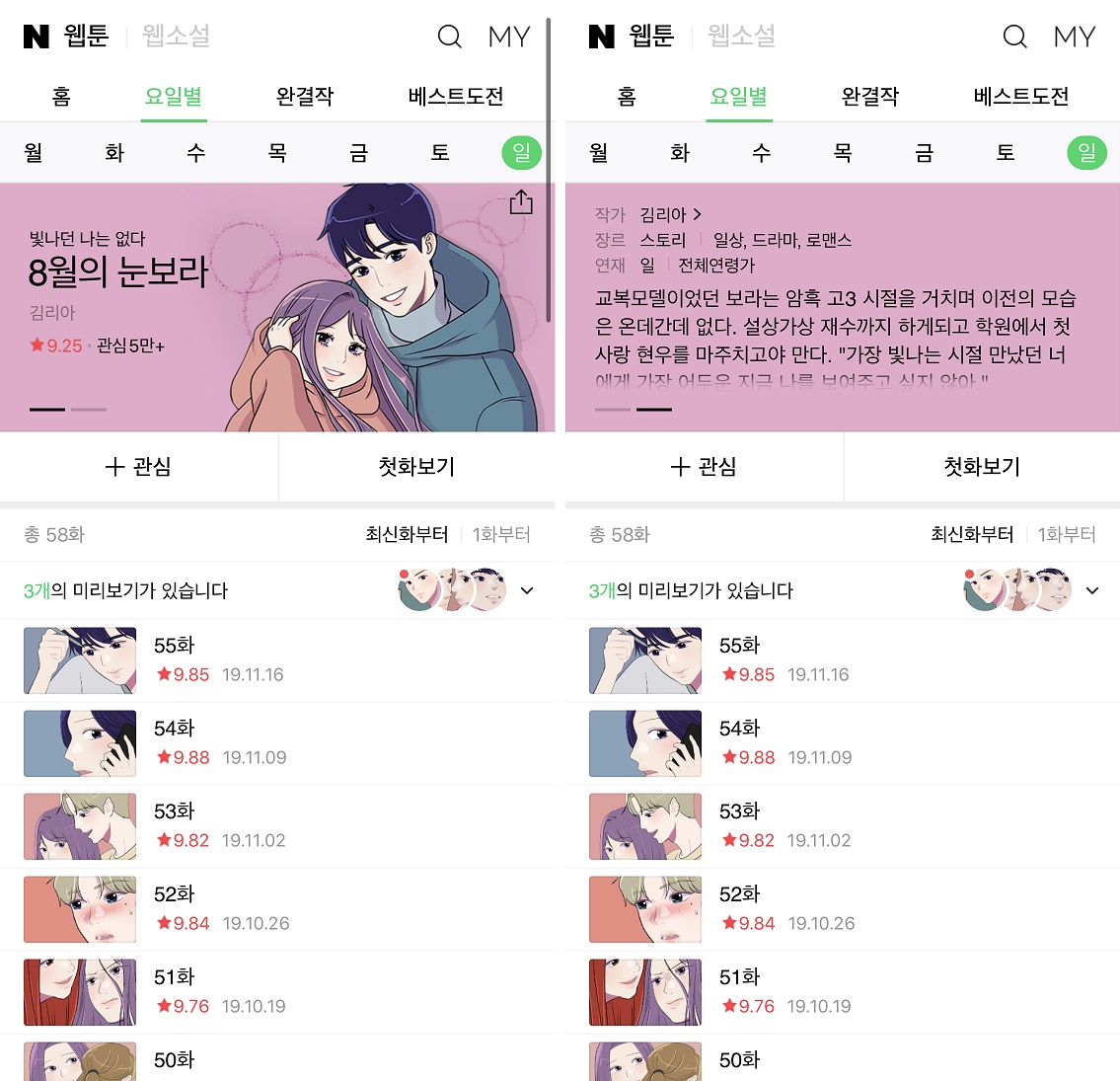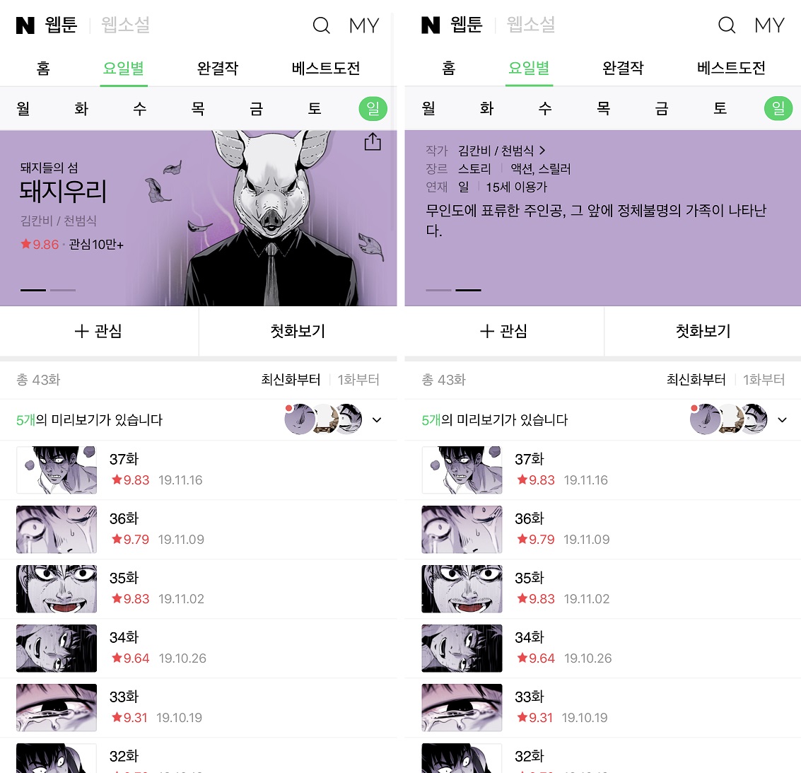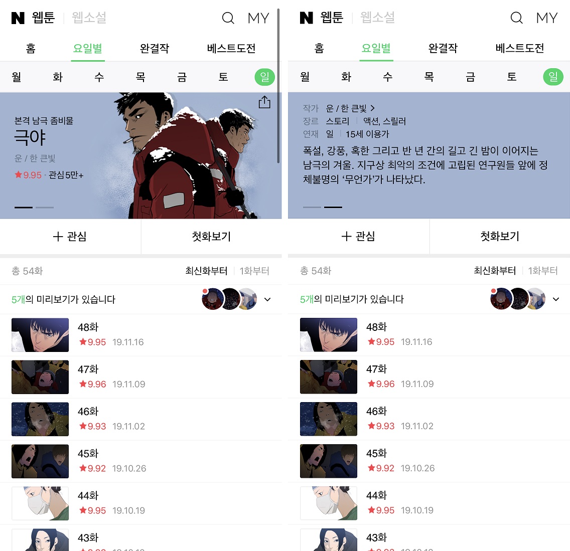 | [2019년 11월 기준] 취향 따라! 네이버웹툰 목요일 연재작 리뷰(후기/추천) (0) | 2019.12.05 |