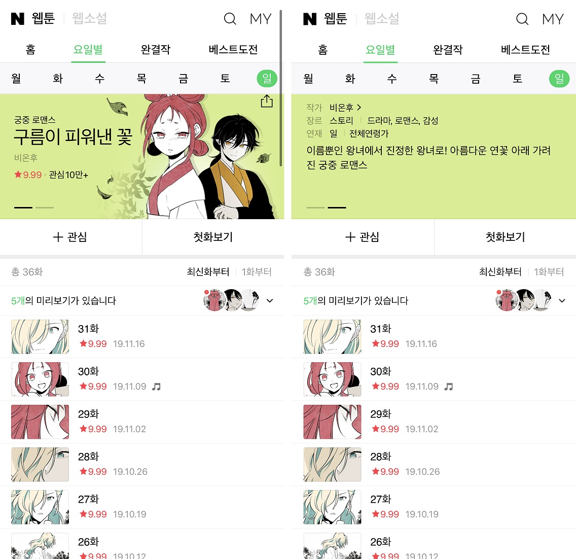 | [2019년 11월 기준] 취향 따라! 네이버웹툰 수요일 연재작 리뷰(후기/추천) (0) | 2019.12.04 |