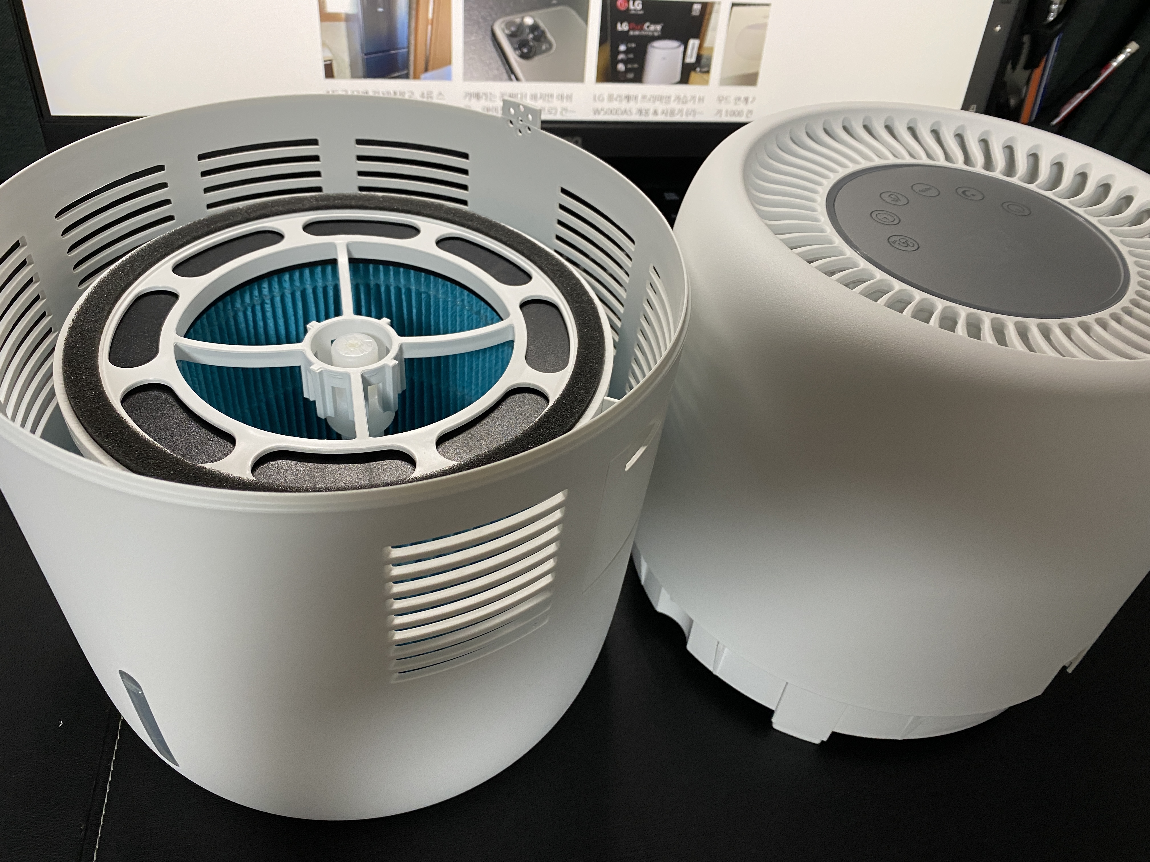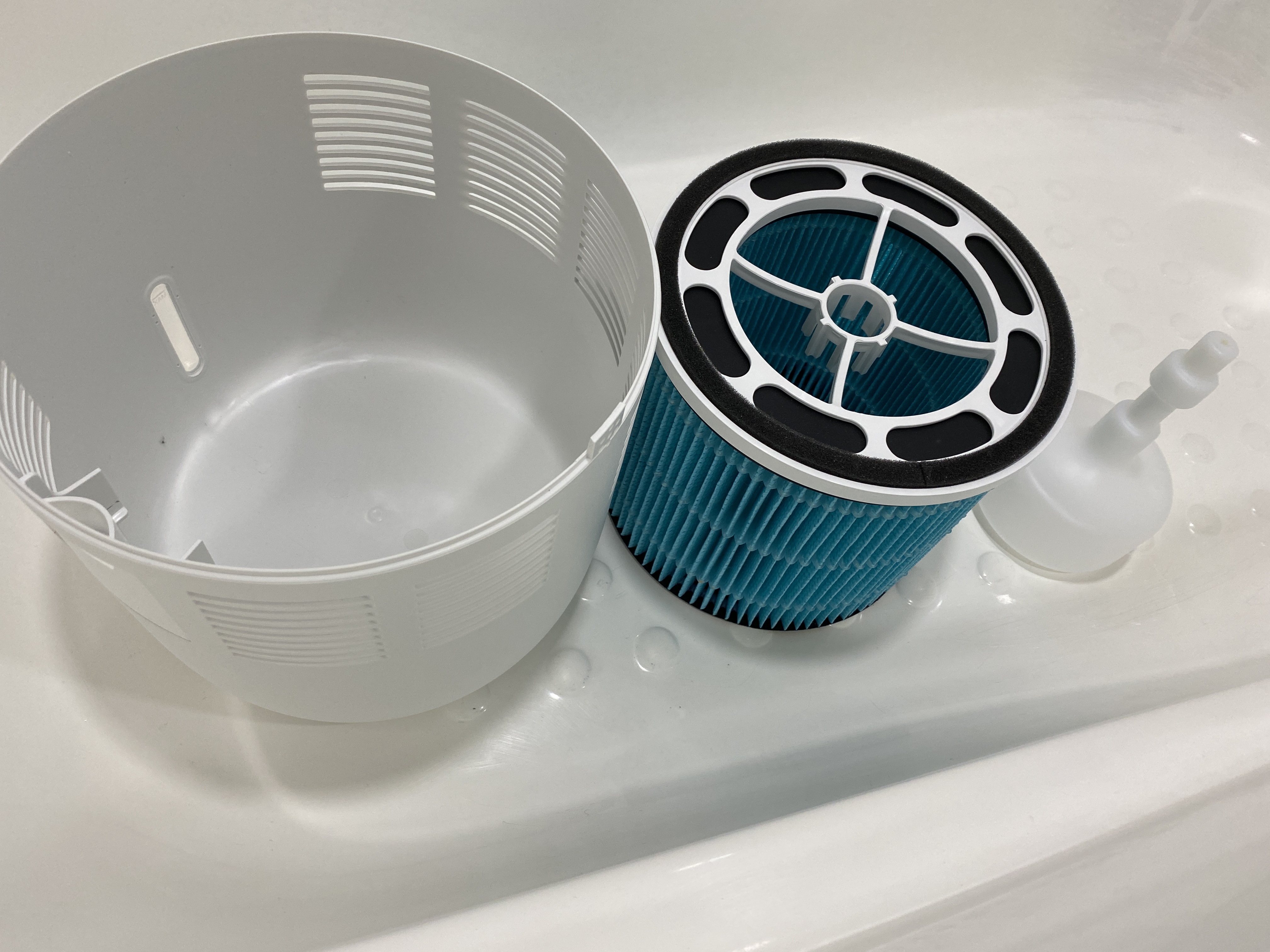 개인적으로 가습기를 볼 때 가장 중요하게 여기는 부분 중 하나가 바로 세척입니다. 이 제품은 기존에 사용했던 제품들과 비슷한 정도에요. 수조는 세척이 간편한데요. 여전히... 전력이 들어가는 상부는 직접 세척이 불가능합니다. 에어스프레이 등을 통해 세척을 할 수밖에 없어요. 대부분의 제품들이 비슷한 상황이라... 이 제품에서 유독 아쉬운 점은 아니에요. 그래도 아쉬운 건 아쉬운 겁니다.