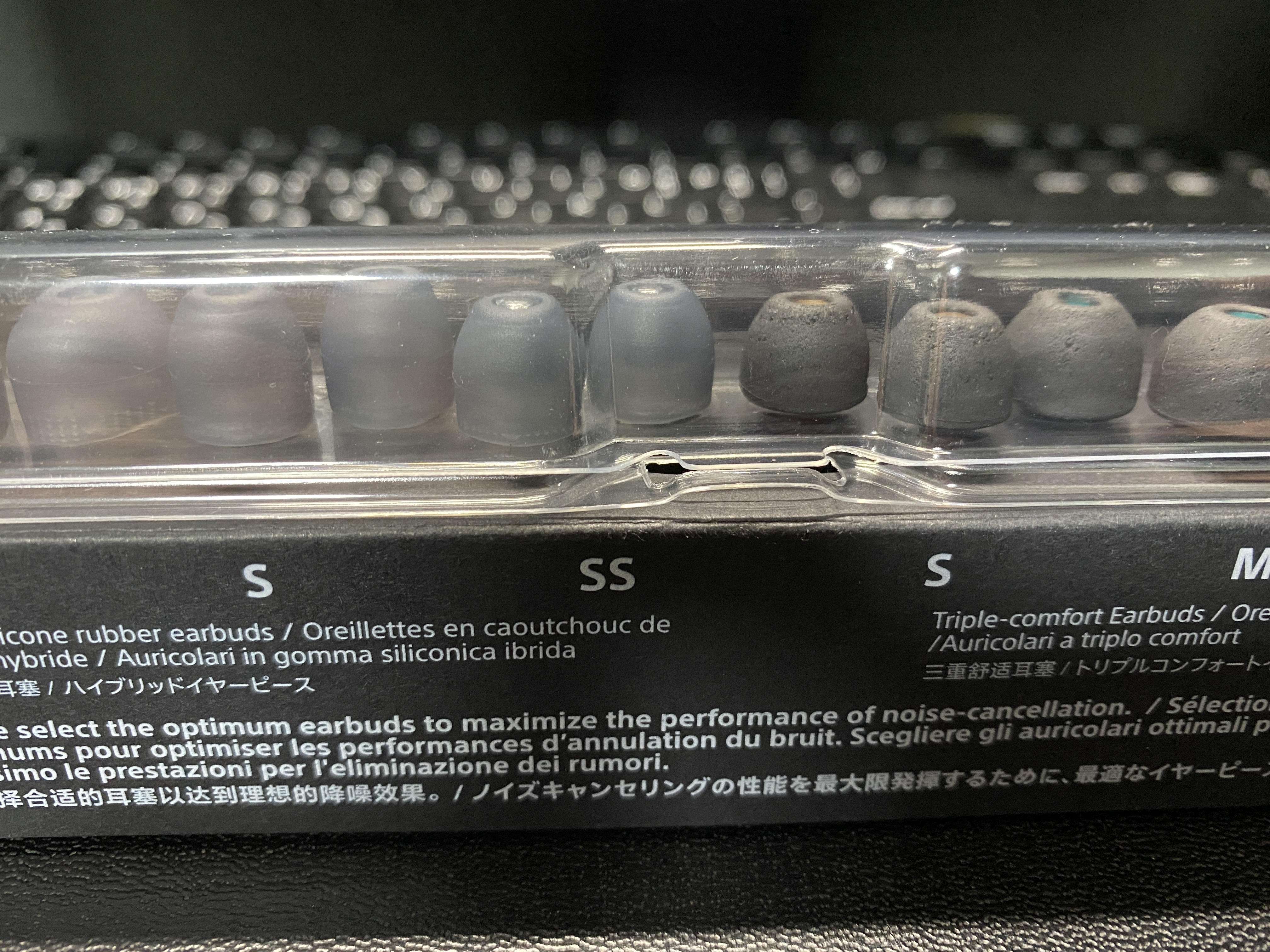 커널형 중에서도 이번에는 귀 안쪽으로 밀착되게 디자인된 앵글드 이어폰 구조를 채택했다고 합니다. 처음 착용하고 살짝 놀랐어요. 기존보다 훨씬 더 귀 안으로 들어오는 느낌입니다. 보니까 이어팁 크기에 차이가 있더라고요. 초반에는 기존 이어팁으로 쓰다가... 도저히 안되겠어서 조금 작은 걸로 바꿨어요. 이어팁을 바꾸면 느낌이 종전과 비슷합니다.