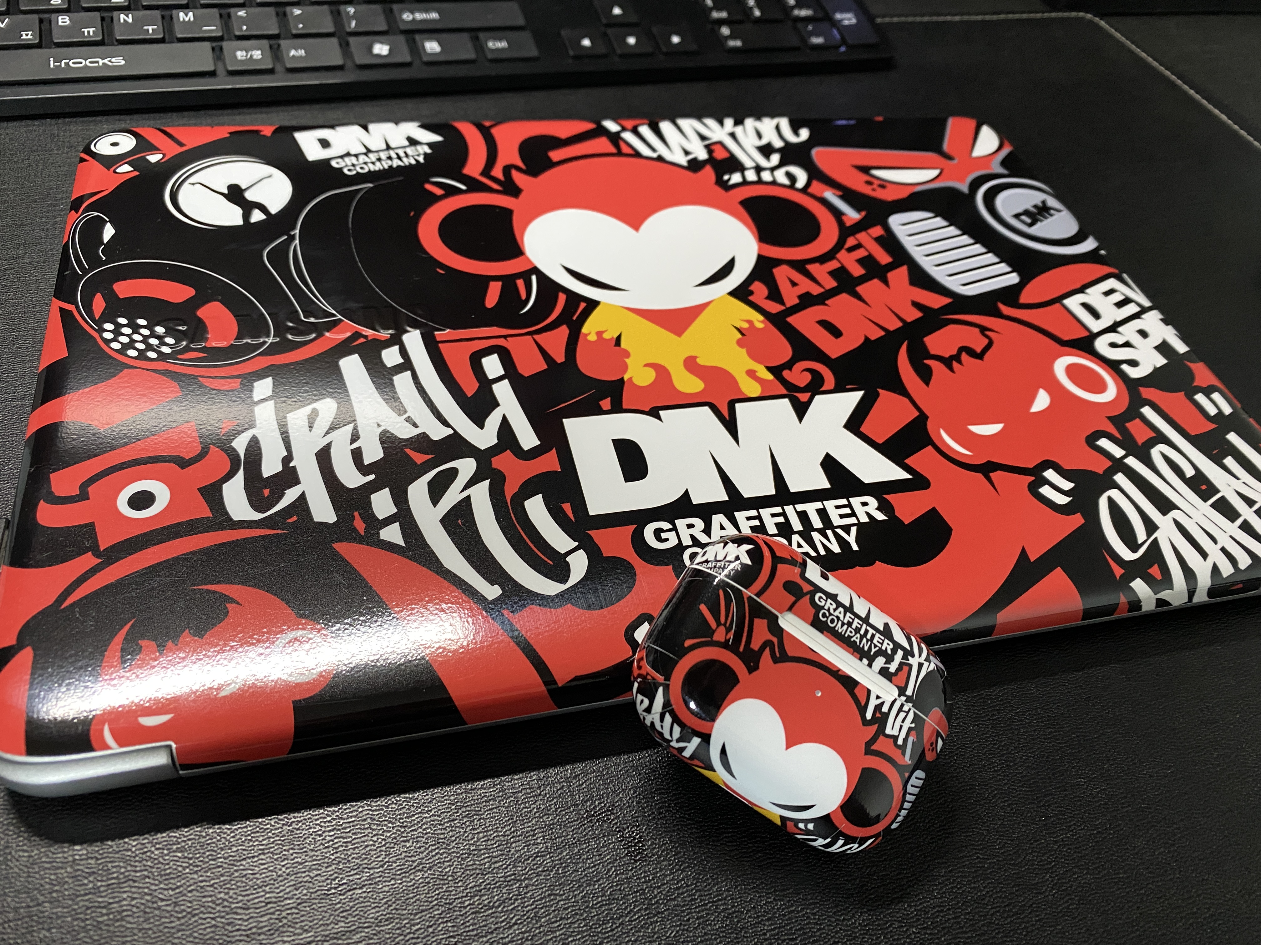이번에도 역시! 그래피커 디자인으로 제작을 했습니다. 지난 노트북 스킨 때 제작했던 디자인( http://naver.me/xbc9DPOO )을 다시 선택했어요. 그래피커 돌돌 DMK 데블몽키 두 번째 버전 디자인입니다. 그래피커 디자인을 선택할 시, 스킨 제작비용 외에 디자인 비용이 추가로 발생합니다.