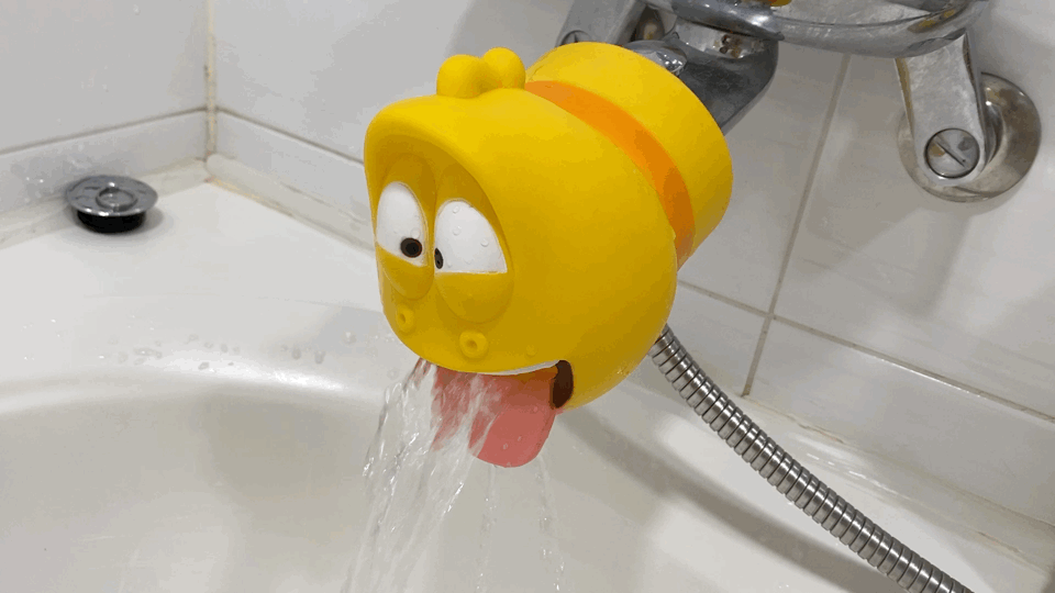 착용은 매우 쉬워요. 그냥 꽂으면 됩니다. 실제 착용 후 물을 틀어보니 웃음이 실실 나옵니다. 생각보다... 기대보다... 괜찮았어요. 지저분하게 보이지 않았고... 친숙한 라바여서인지 거부감이 없었습니다. 정말 다른 리뷰처럼 씻기 싫어하는 아이들도 손과 세수를 손쉽게 시킬 수 있을 것 같아요.