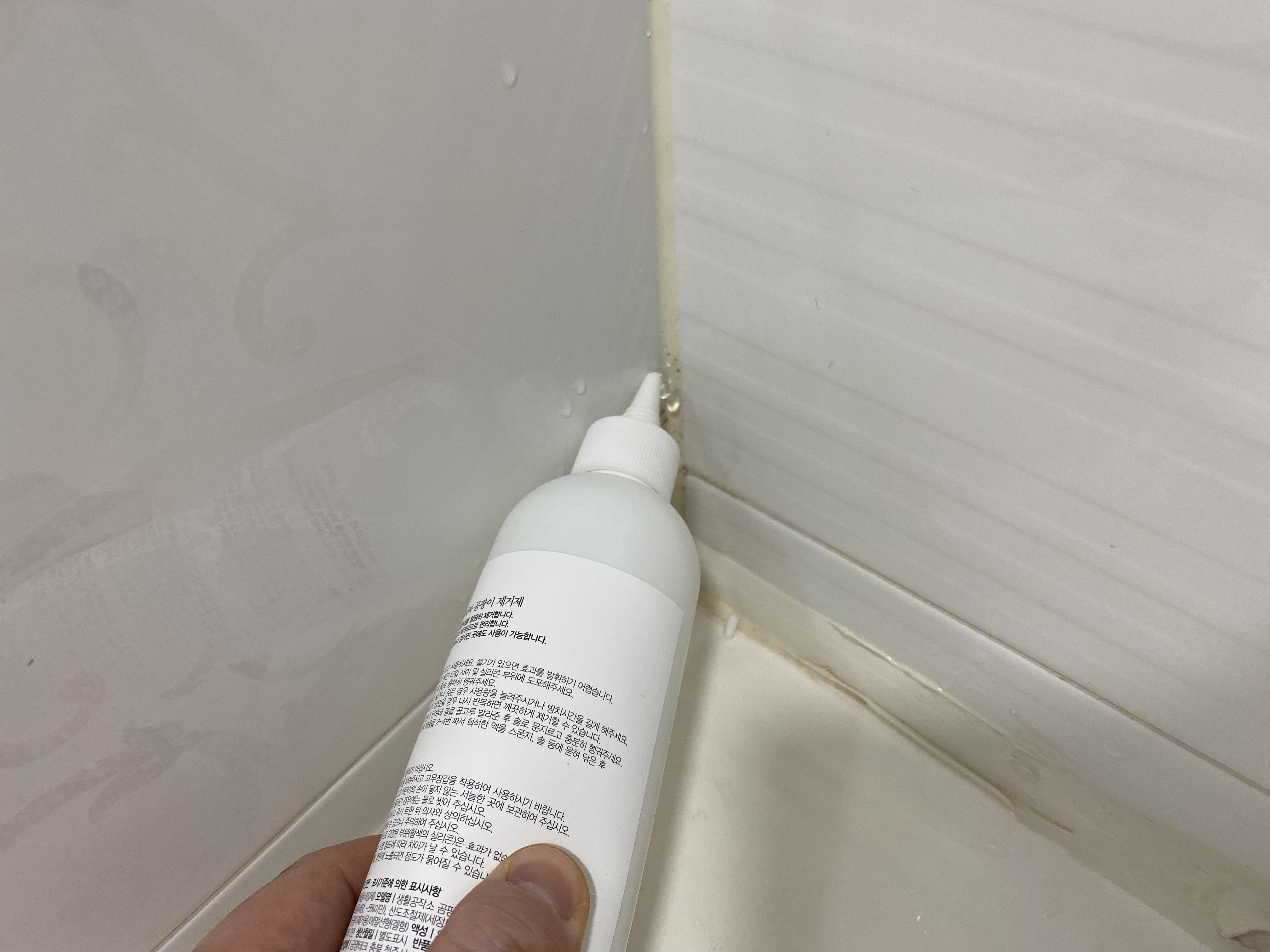 두 번째는 냄새가 없다는 점입니다. 락스 기능까지 한다는 설명에 냄새를 걱정했었는데요. 무취에 가깝습니다. 밤새 발라놓은 다음 아침에 씻어냈는데요. 냄새가 전혀 없었습니다.