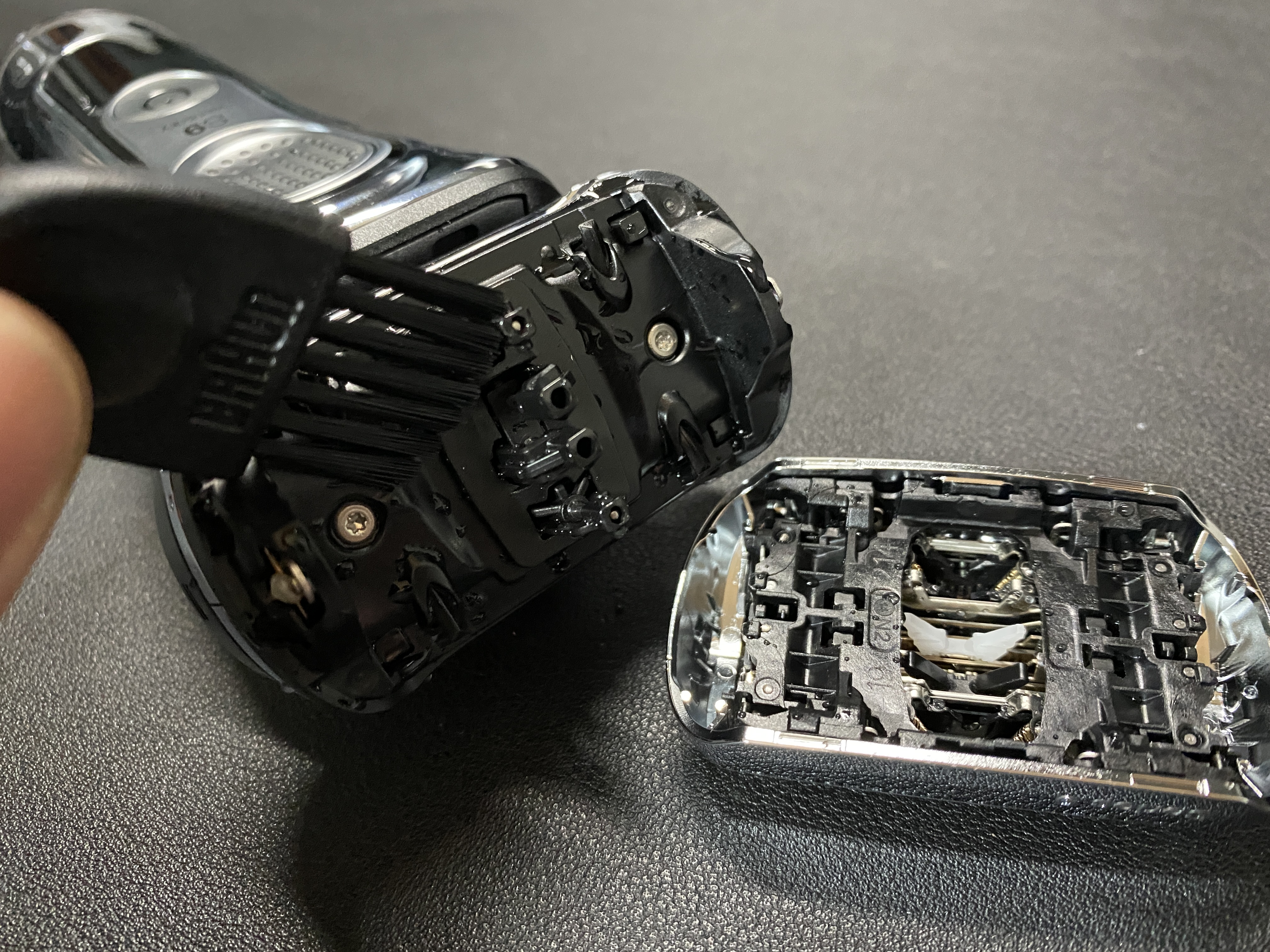 세척 스테이션에 대해 고민을 많이 했습니다. 포함 모델은 가격이 훌쩍 올라가거든요. 거기에 세정액 구매 등 유지 비용이 상당하다는 리뷰를 보고 전 포기했습니다. 대신 습식도 가능한 모델이라 흐르는 물에 세척을 하면 됩니다. 전 거품비누를 이용해서 세척을 하고 있어요. 면도날 분리가 손쉬워서 사용 후 내부까지 매번 세척을 하고 있어요. 추가로 1주일에 한 번 초음파 세척기로 세척을 합니다. 약 2주에 한 번씩은 윤활유도 발라주고 있어요. 확실히 기름칠하고 나면 피부에 닿는 느낌이 달라집니다.