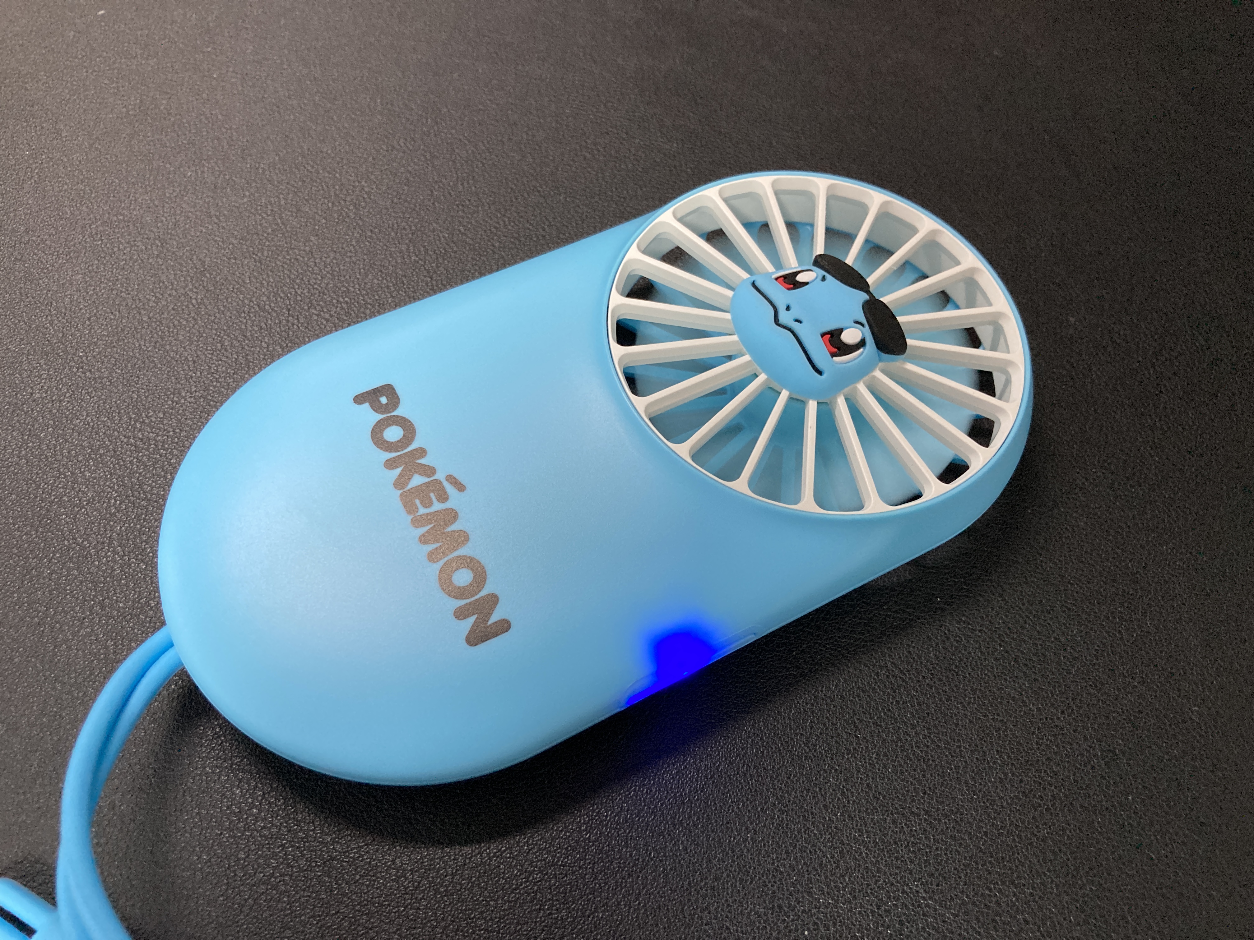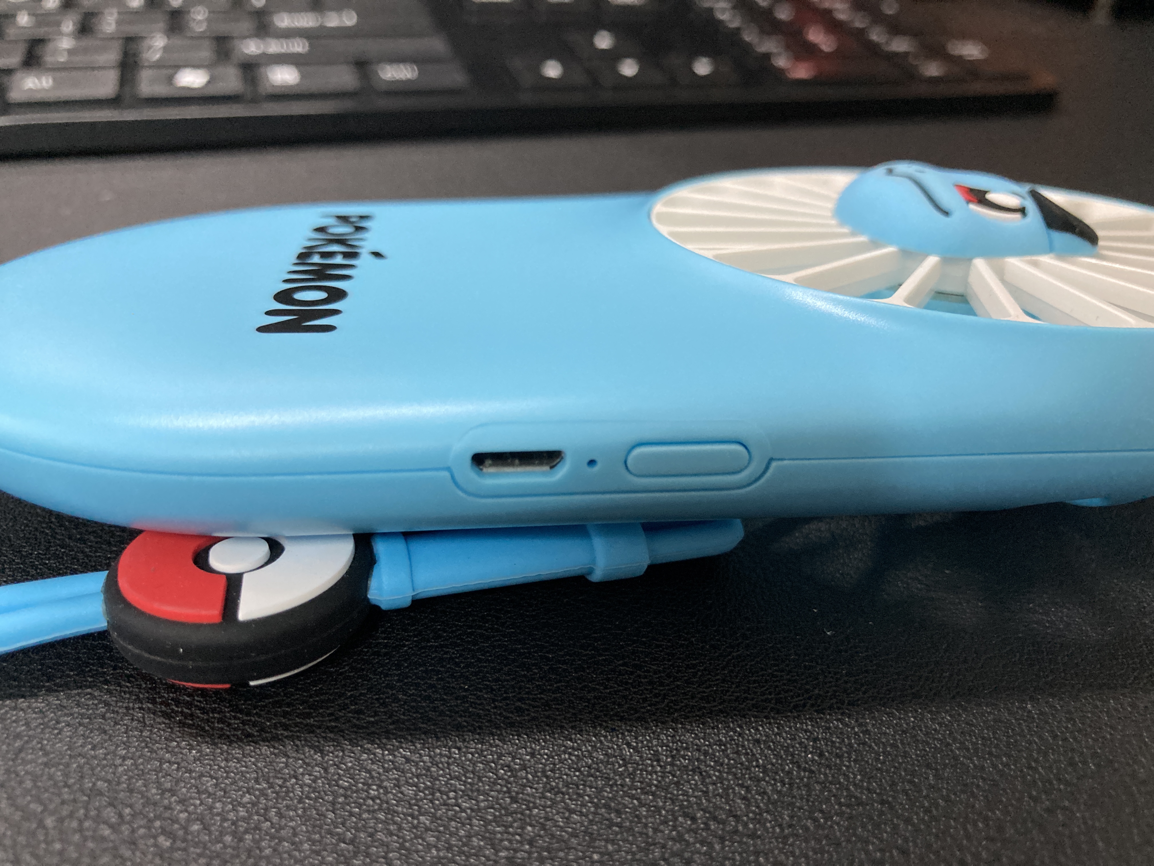 동작시 푸른빛이 들어오는데요. 이 부분도 상당히 예쁘고 놀랐어요. 노란 포켓몬 제품은 노란빛이 들어오나 궁금하기도 했습니다. ㅎㅎ 바람세기는 2단계로 구분돼요. 하나의 동작 버튼으로 한차례 누르면 1단계, 다시 누르면 2단계, 한 번 더 누르면 동작이 꺼집니다.