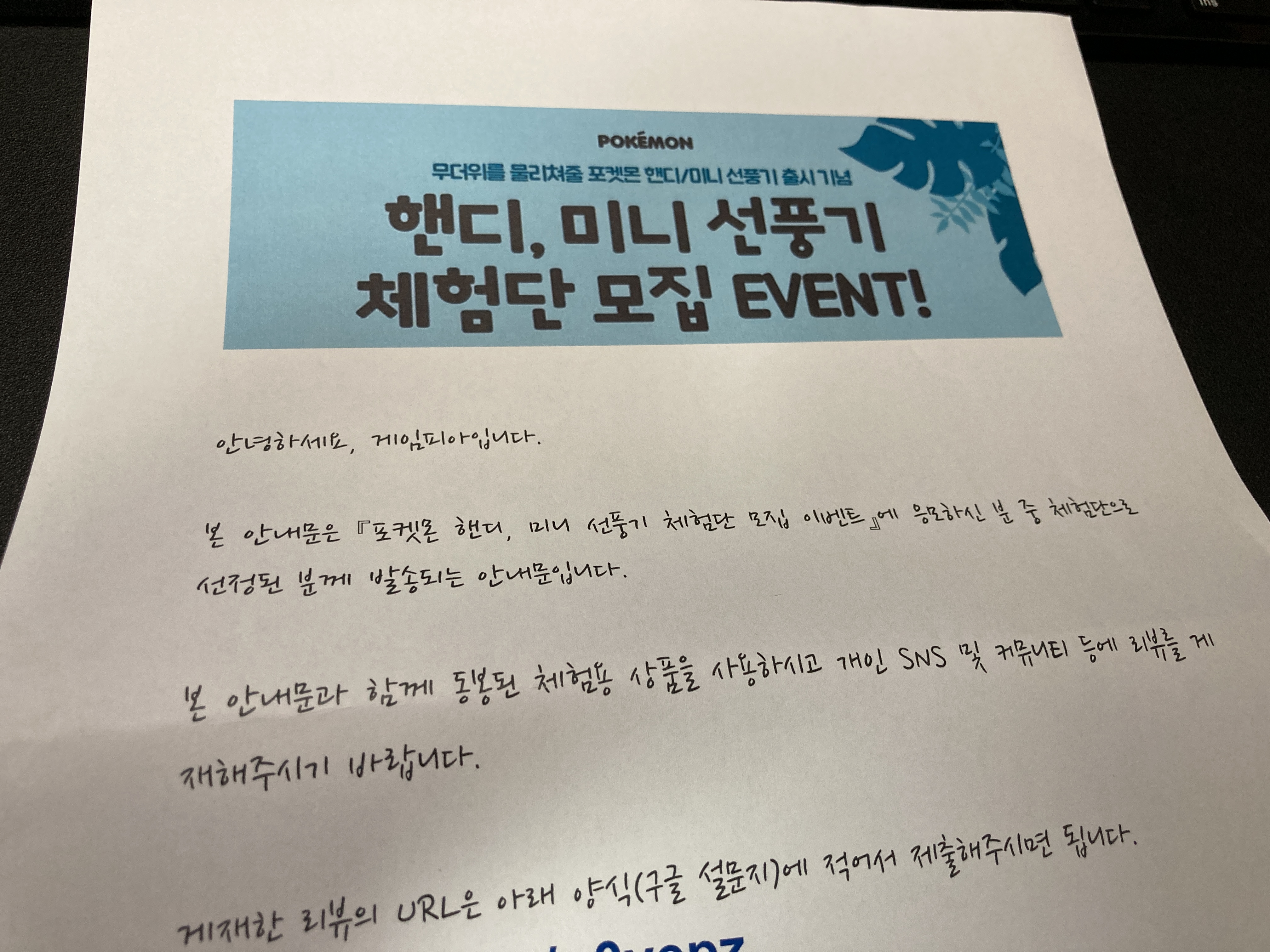 평소 구독 중이던 회사 공식 블로그( https://blog.naver.com/gamepia2013 )에서 너무 귀여운 핸디, 미니 선풍기 체험단을 모집해서 바로 응모를 했습니다. 운 좋게 당첨이 되면서 체험의 기회를 얻을 수 있었어요. 제조사로부터 제품만을 제공받았으며, 별도의 고료를 받진 않았습니다.