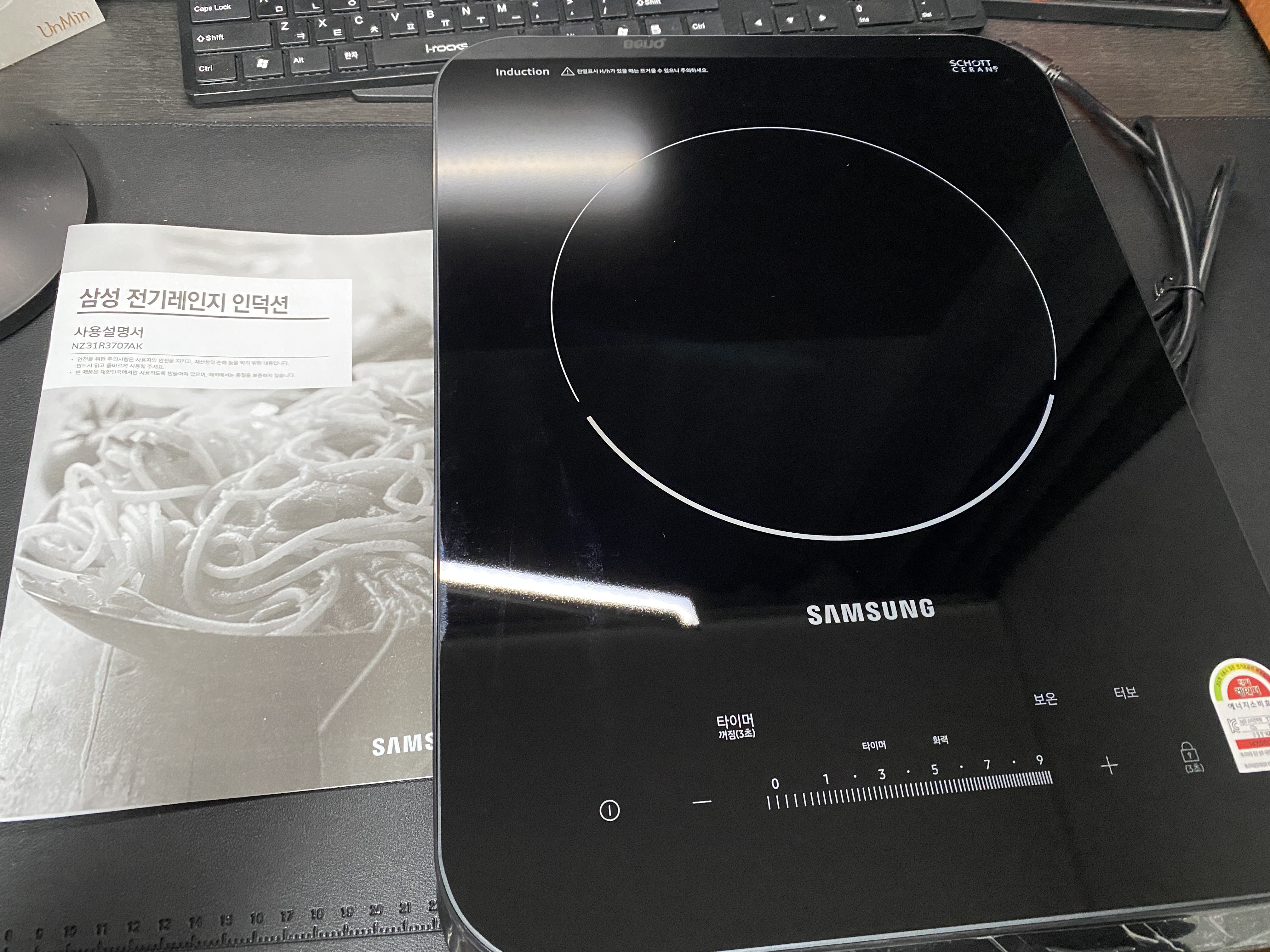직접 구매한 제품은 아니고, 삼성 에어드레서( http://naver.me/G85WSj7R )를 사고 받은 사은품입니다. 개인적으로 인덕션을 선호하지 않습니다. 여러 장점이 있습니다만, 혹시나 하는 안전상의 문제 때문에 꺼리게 되더라고요. 사은품으로 받은 만큼 사무실에서 점심 먹을 때 사용해보려고 개봉을 했습니다.