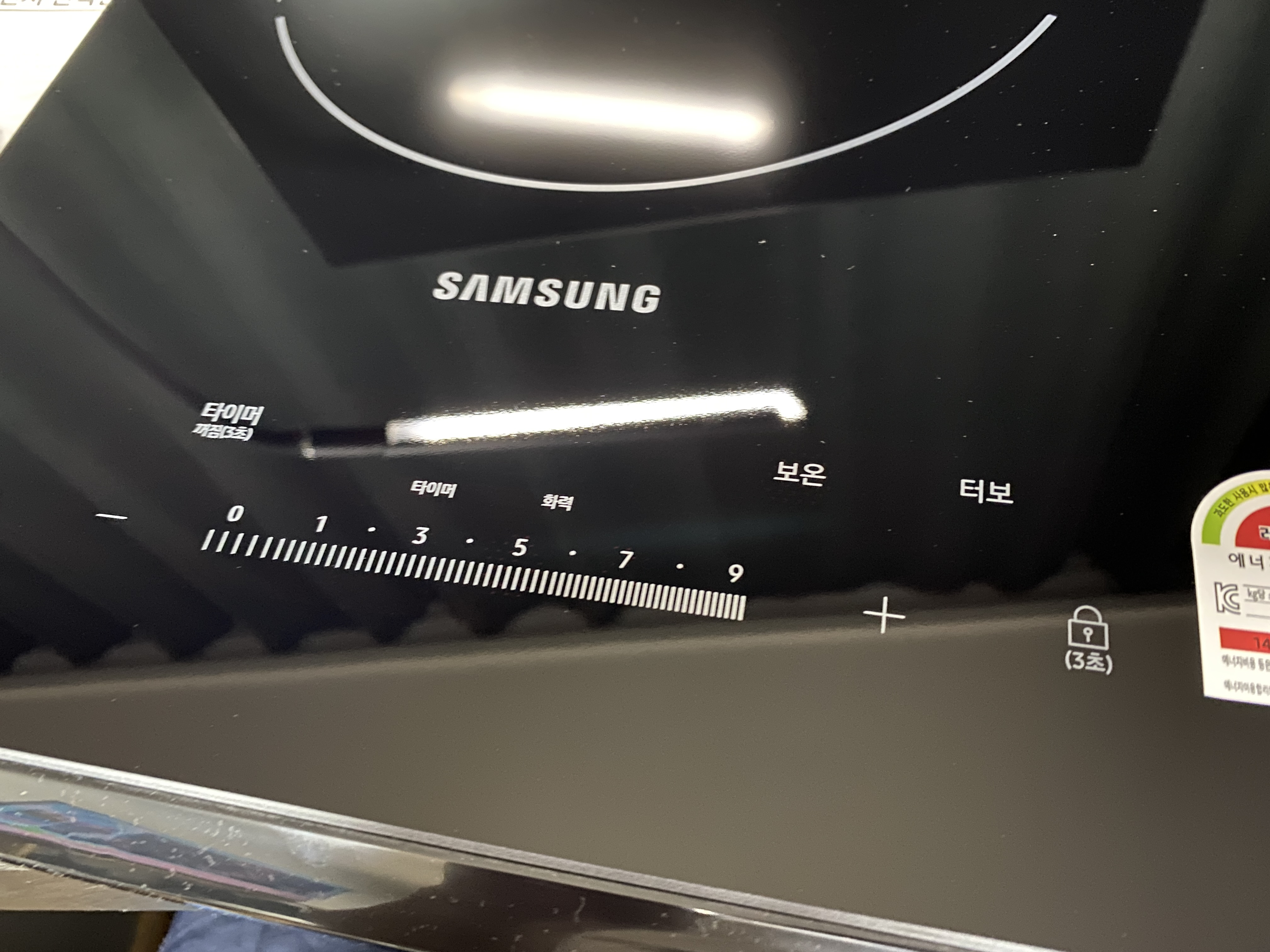 터치식이며 화력은 1에서 9까지 조작이 가능합니다. 슬라이드 식으로도 터치가 가능하더라고요. 최대인 9가 1,800w이며, 터보 작동 시 10분에 한하여 2,100w로 동작한다고 합니다. 그 외 타이머나 보온, 잠금 기능이 있습니다. 1구 제품인 만큼 복잡하지 않고 심플합니다. 후면에는 냉각 펜이 있어서 동작시 펜 돌아가는 소리가 납니다. 거슬릴 정도의 소음은 아니에요. 처음 사용하는 인덕션 제품이라 비교 대상이 없어 설명이 부족하네요ㅠㅠ