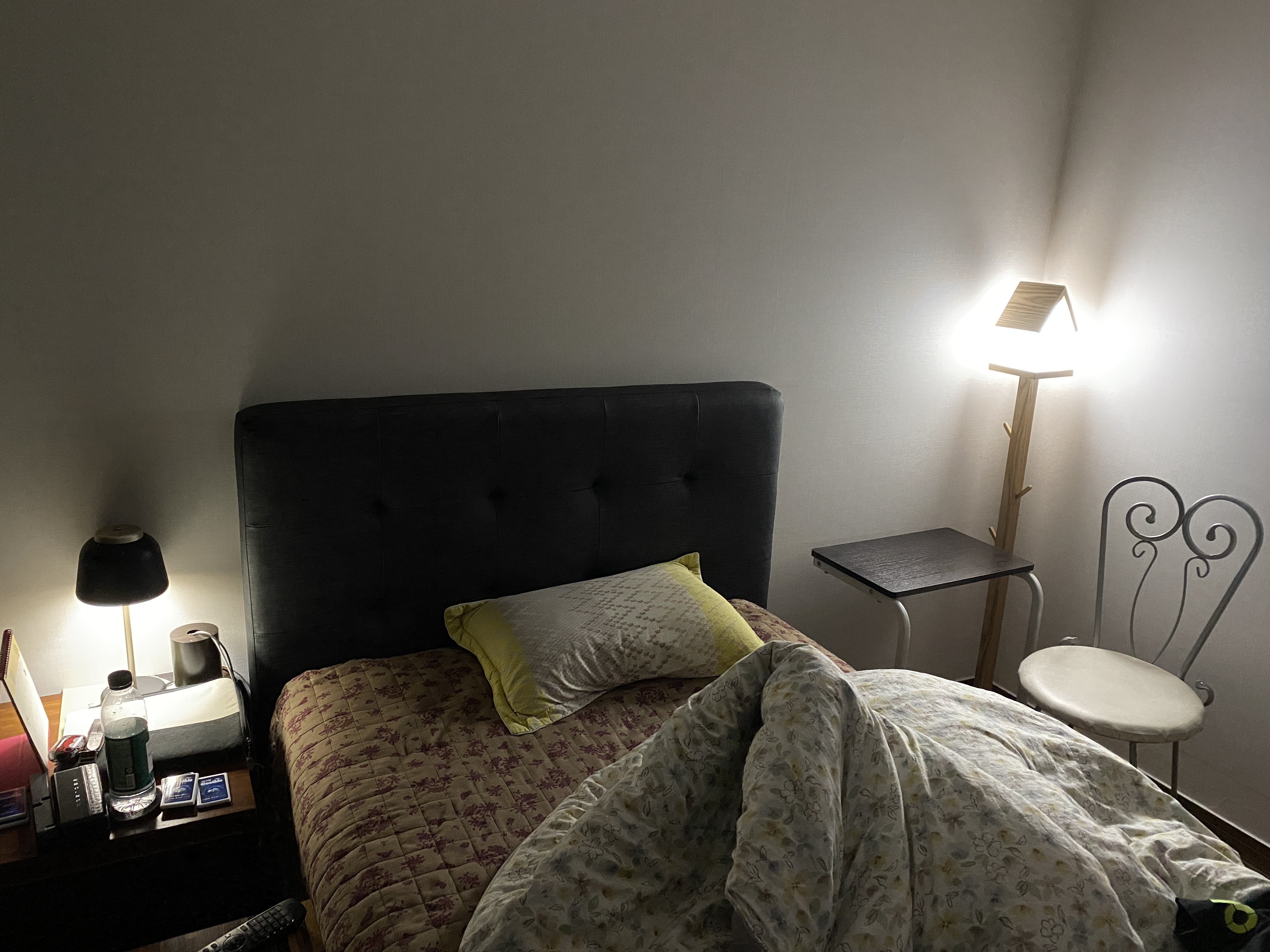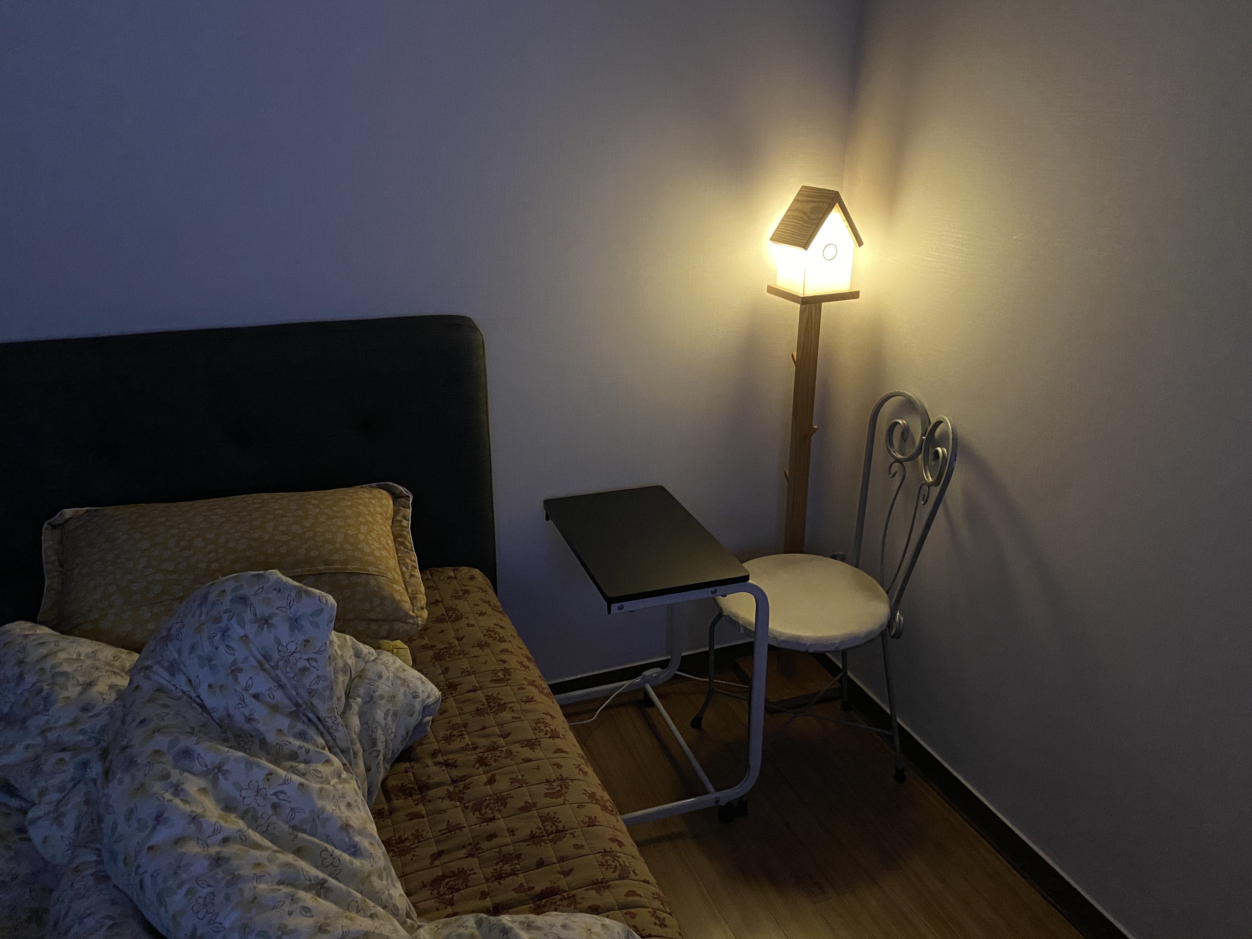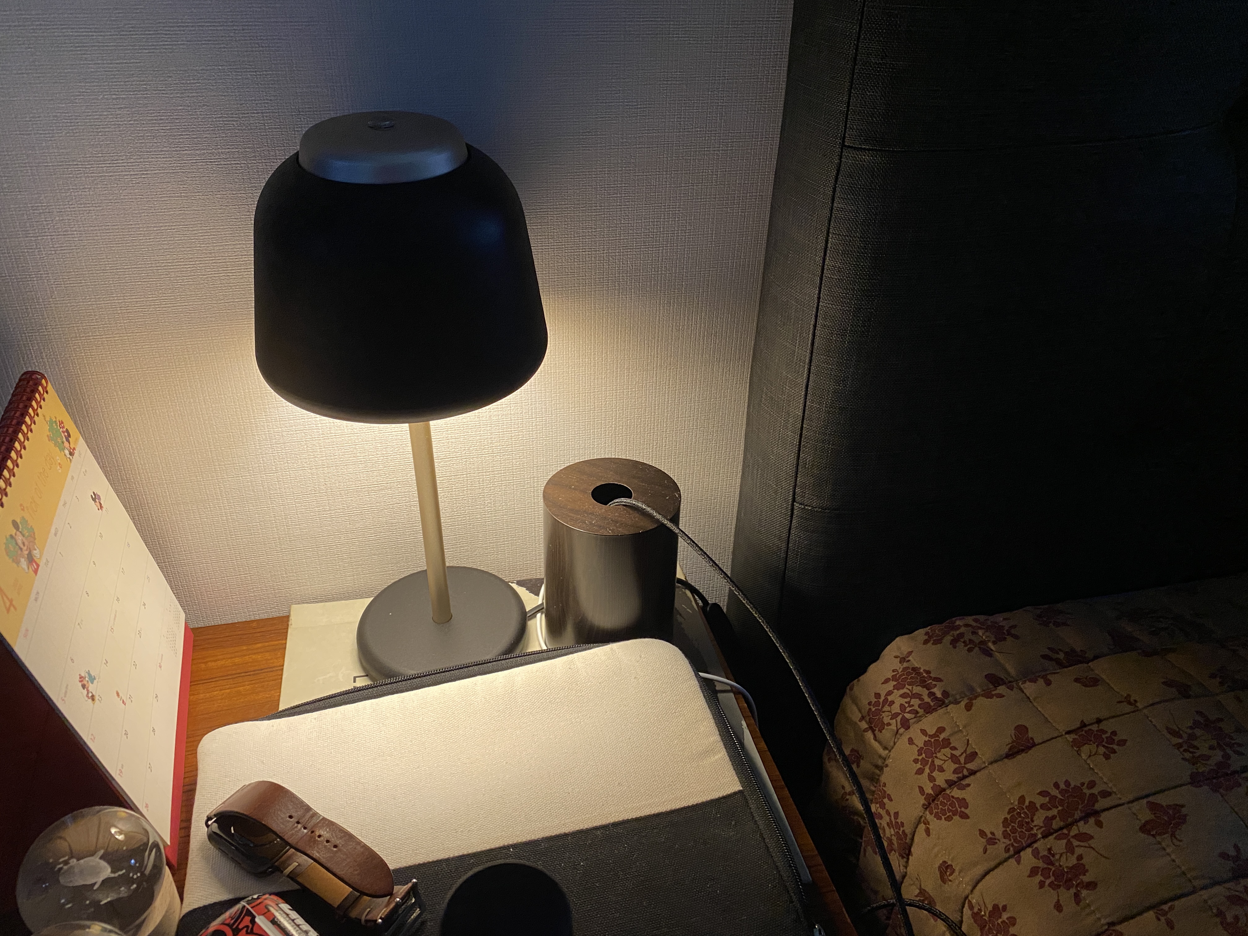 최초 노란빛 제품을 선택했는데요. 원하던 빛이 나오지 않아서 주광색(흰색, 형광색) 3w 전구를 추가 구입했습니다. 침대를 기준으로 좌우에 하나씩 배치를 했고요. 상단이 뚫려 있지 않아서 빛이 아래로만 은은하게 나옵니다. 일반적으로 환한 스탠드와 비교하면 차이가 많이 나요. 수유등 정도라고 생각하면 적당할 것 같습니다.