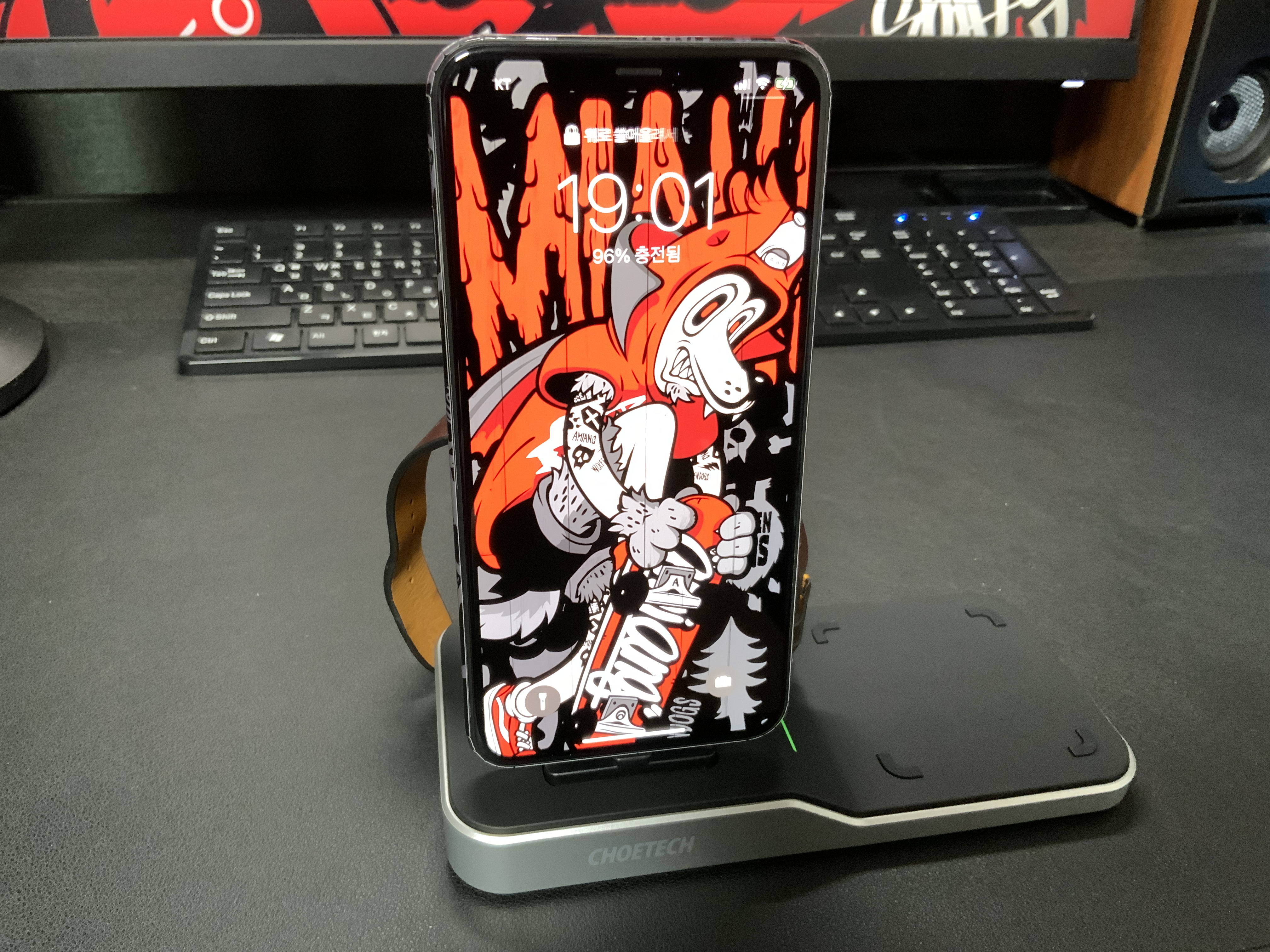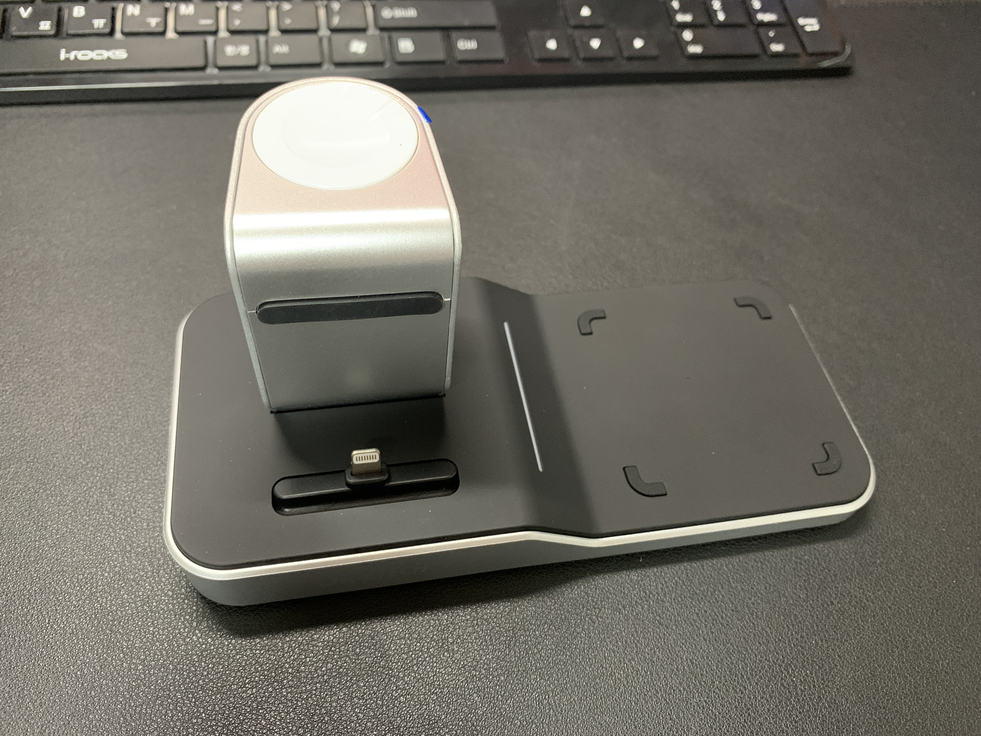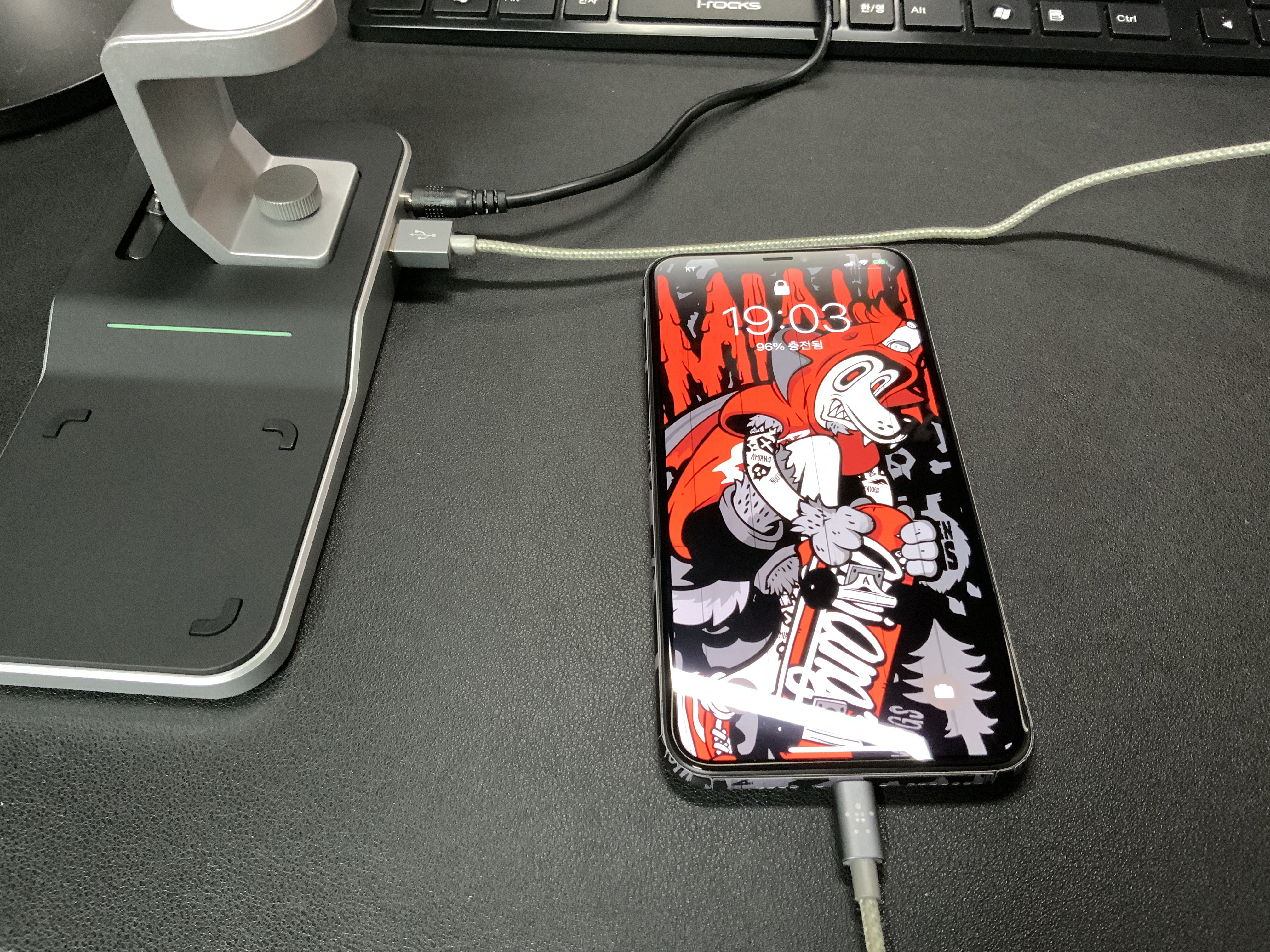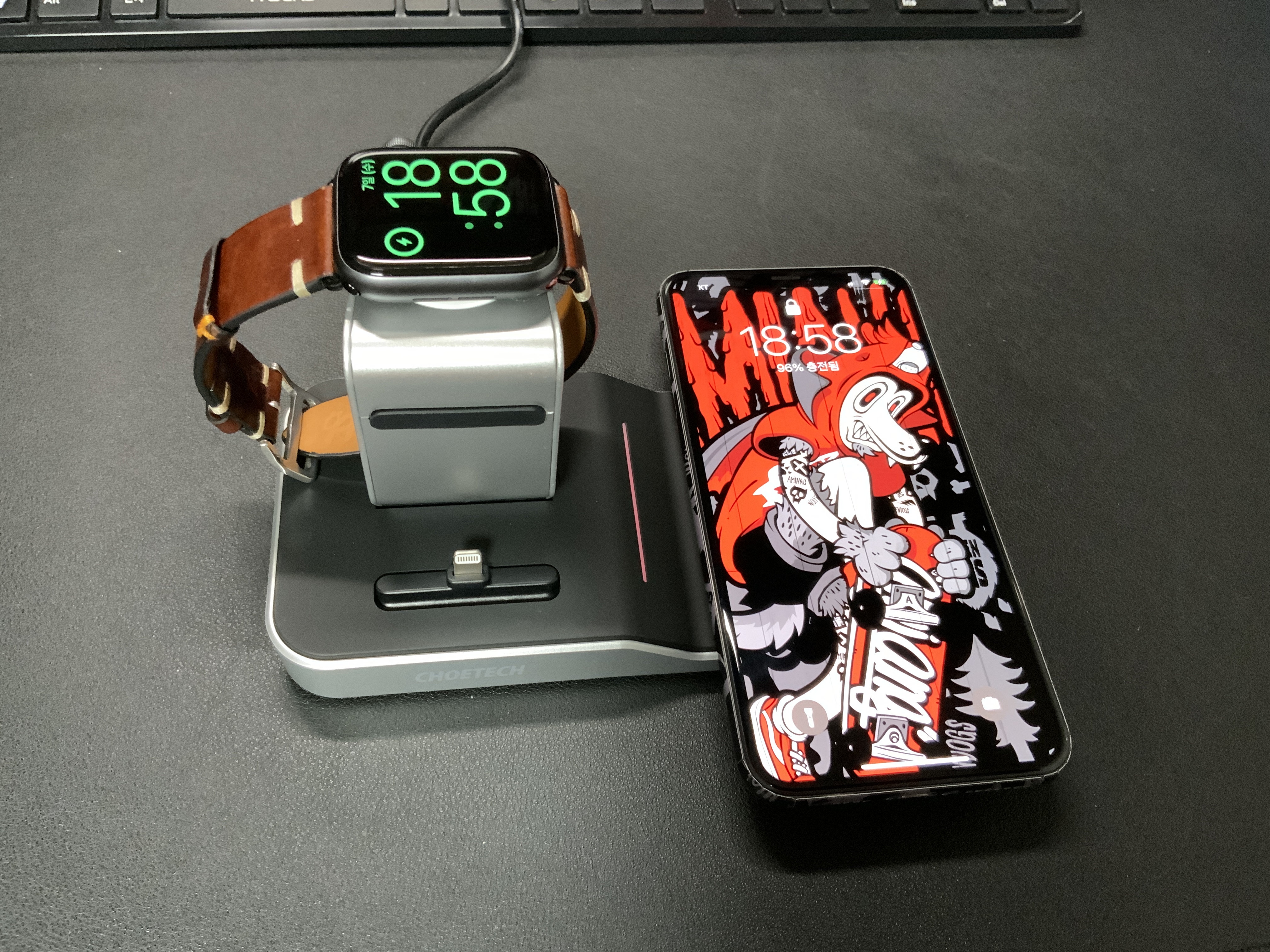 약 이틀간 실제 사용을 해봤습니다. 사무실 자리에 놓고 사용하고 있는데요. 애플워치4 배터리가 슬슬 수명을 다해가면서 어떨 때는 하루를 못 갑니다. 보조배터리로 종종 충전을 하곤 했었어요. 워치 충전용으로만 봐도 개인적으로 매우 유용했습니다. 거기에 전 무선 충전 패드보다는 8핀독에 꽂아서 충전을 자주 하게 됐어요. 알림이 오면 바로 확인이 가능하니까요. ㅎㅎ