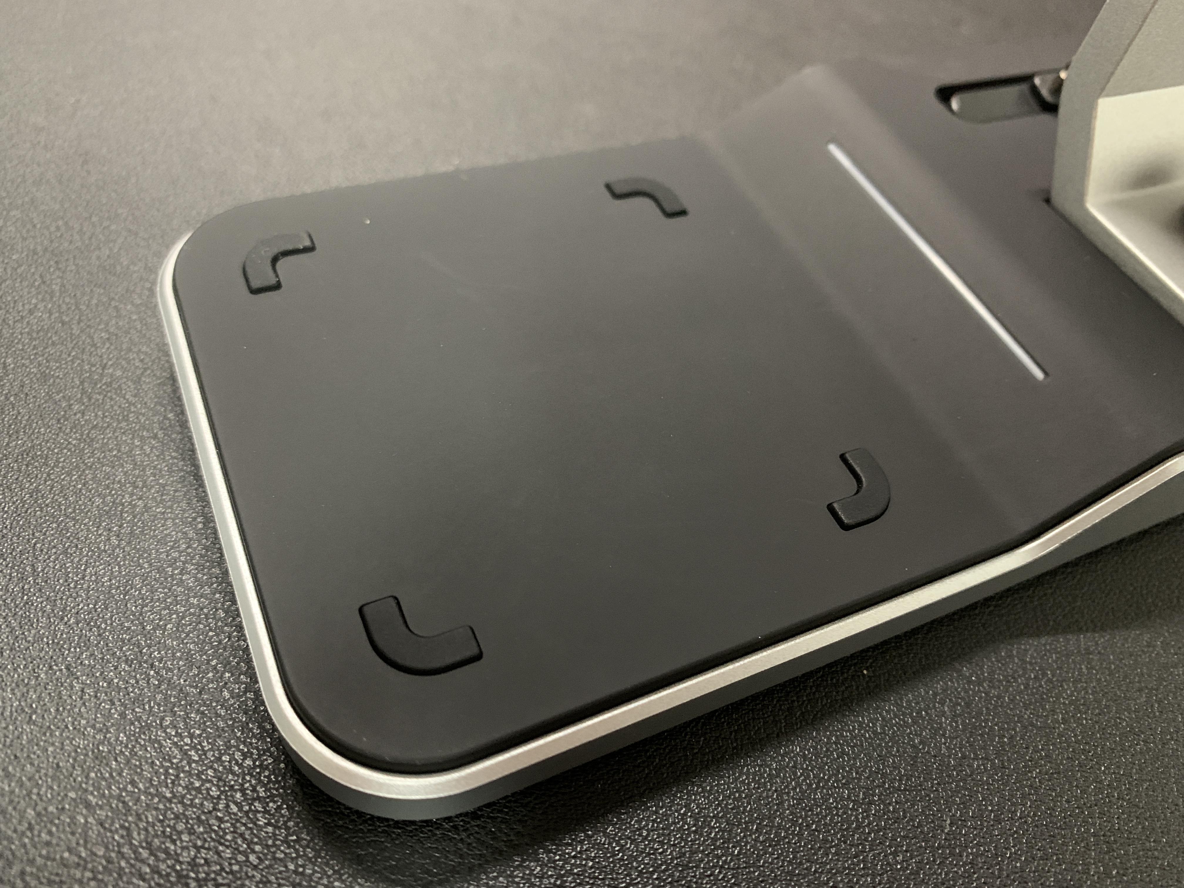 우선 디자인 면을 보면... 상당히 취향에 맞습니다. 전체 바디를 크롬으로 덮고 충전부를 블랙으로 포인트를 줬습니다. 마지막 소프트 LED가 위치하고 있어요. 바닥은 미끄럼 방지 패드와 2개의 열 배출구가 있습니다. 올인원 제품인 만큼 다수의 제품 충전을 대비하여 발열에 신경을 썼어요. 디자인은 상당히 마음에 들었습니다.