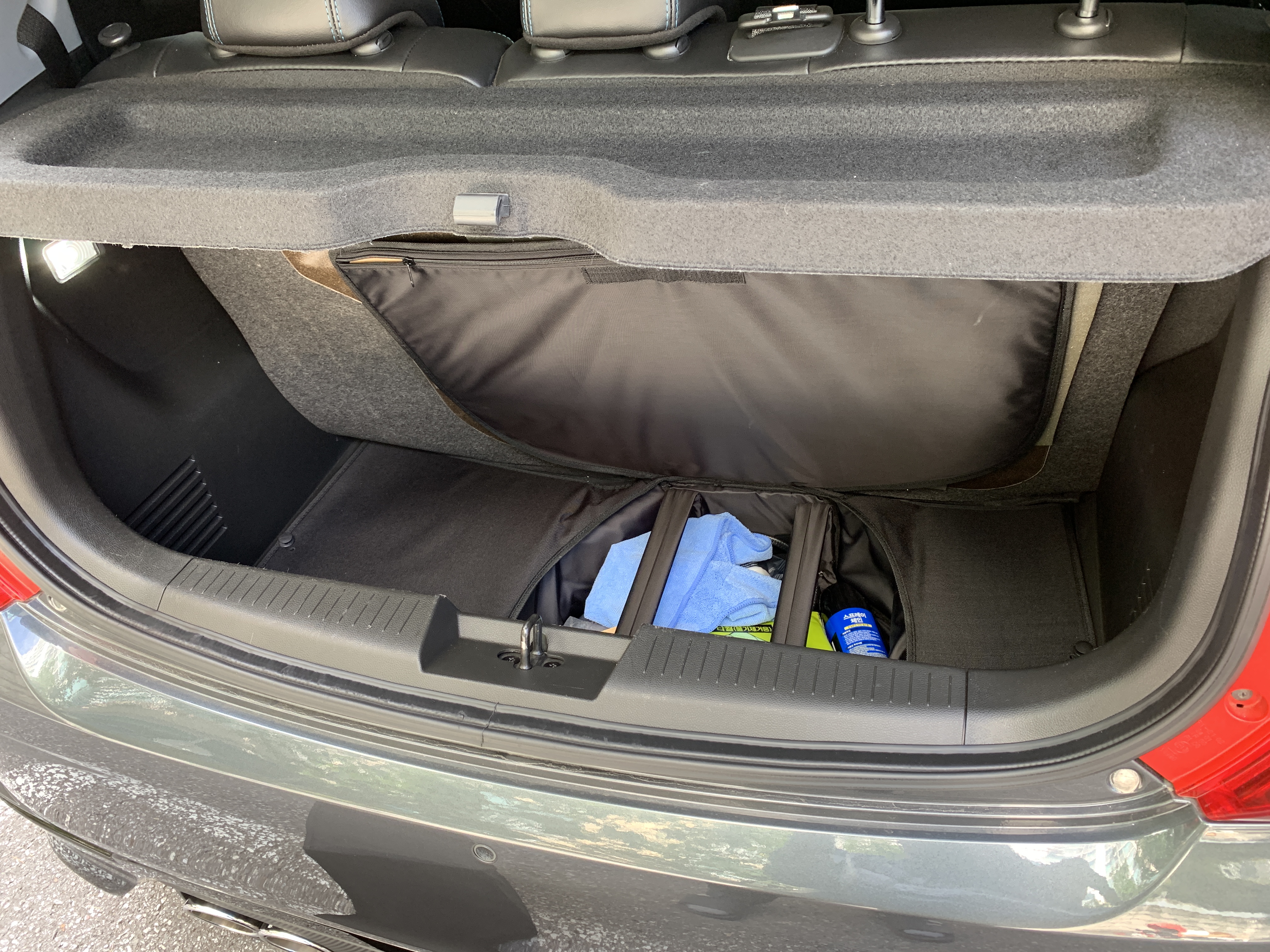 스페어타이어 공간을 활용하는 트렁크 정리함을 매우 유용하게 사용 중입니다. 그 외에 정리함 하나가 더 있으면 좋겠다고 생각했는데요. 지난 바디킷 설치하러 갔던 곳에서 정리함만 추가로 구입을 했습니다. 부착이 아니라 단순히 거치하는 건데요. 사이즈가 딱 맞아서 움직임이 없어요.