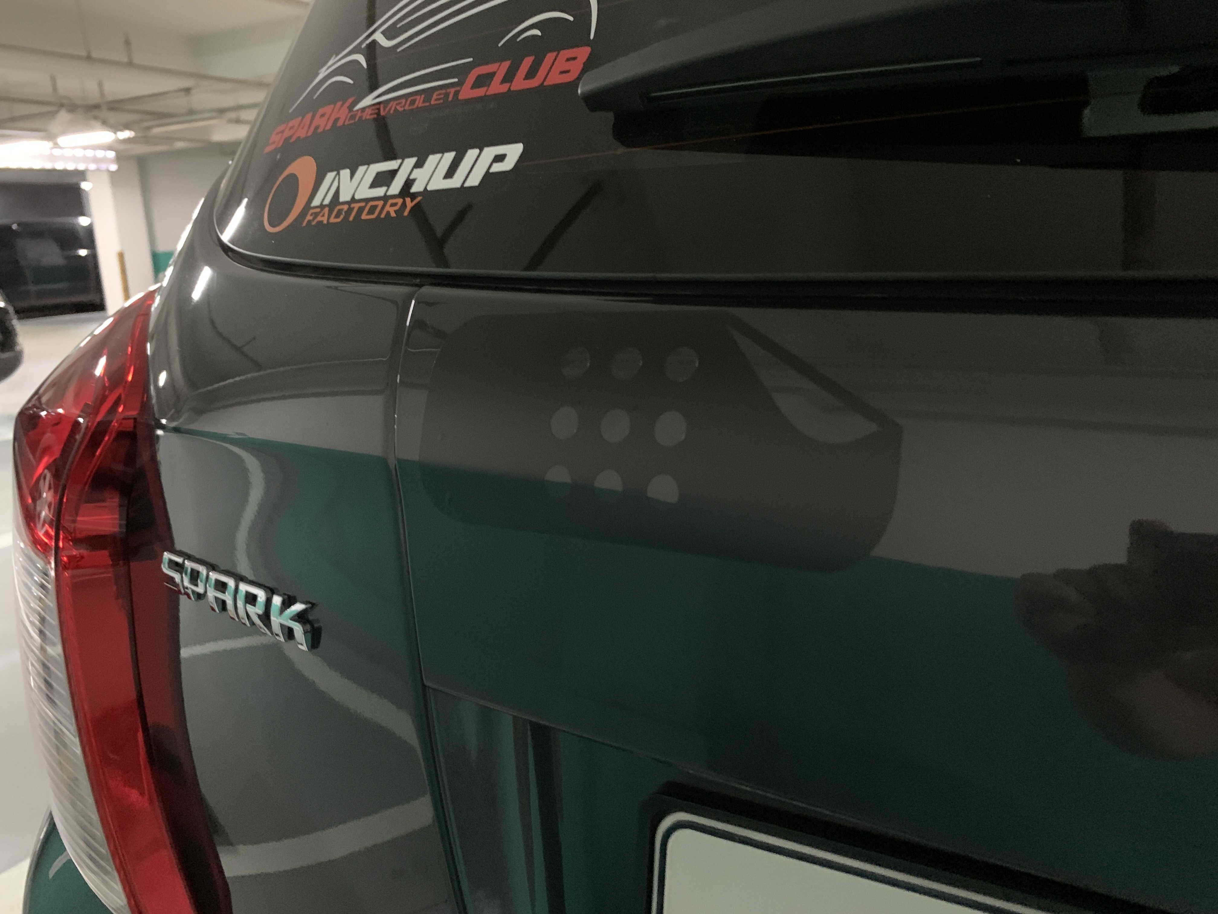 우선 동봉되어 있는 클리너로 상단 브레이크등을 닦아주고, 조심스레 부착하면 됩니다. 이 제품은 넥스트스팍과 뉴스팍 공용입니다. 부착시 확실히 이쁩니다. 혼자 있다보니 브레이크 밟고 촬영을 못했어요. 브레이크 밝으면 스파크 글자에서만 불이 들어옵니다. 예뻐요!